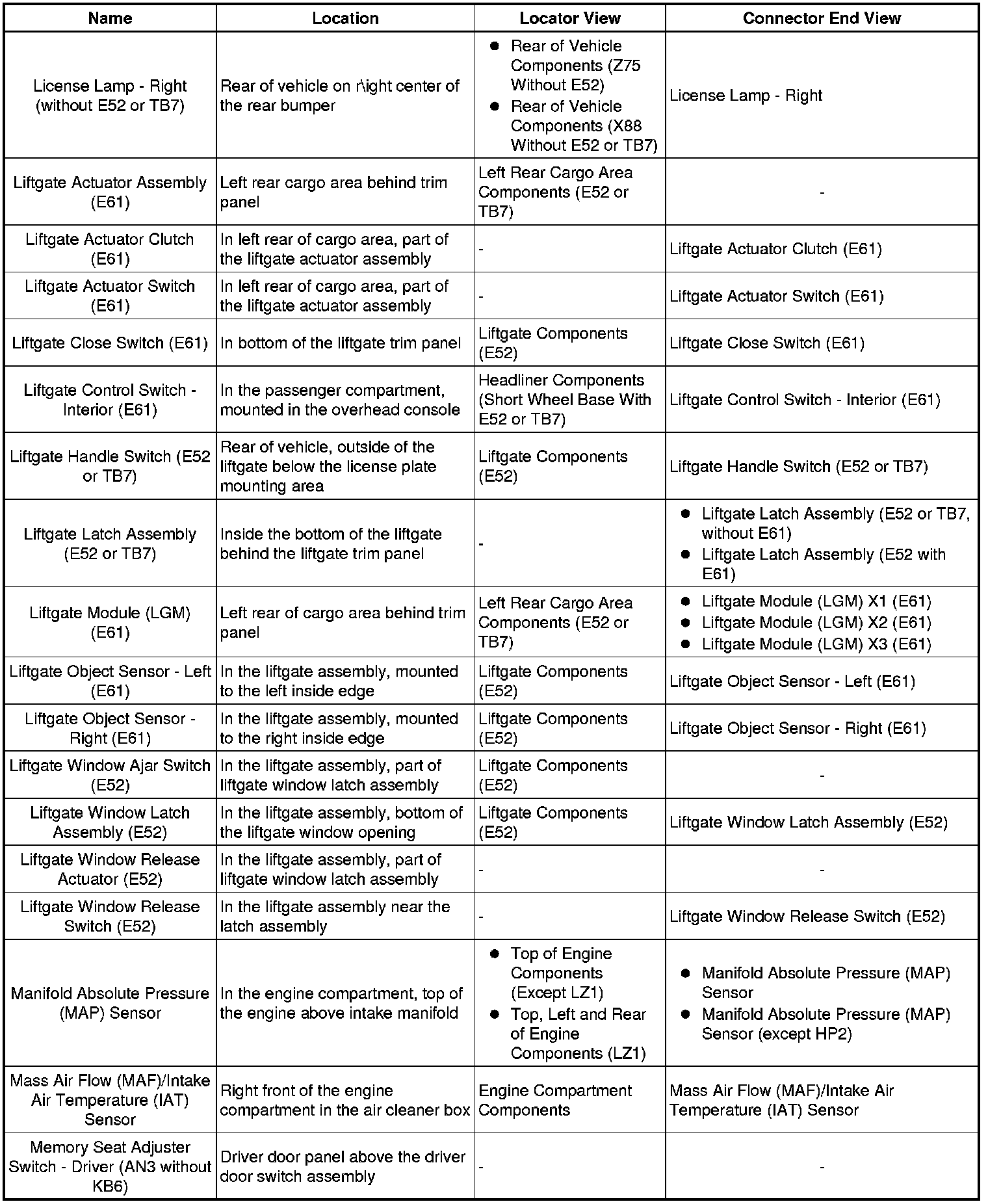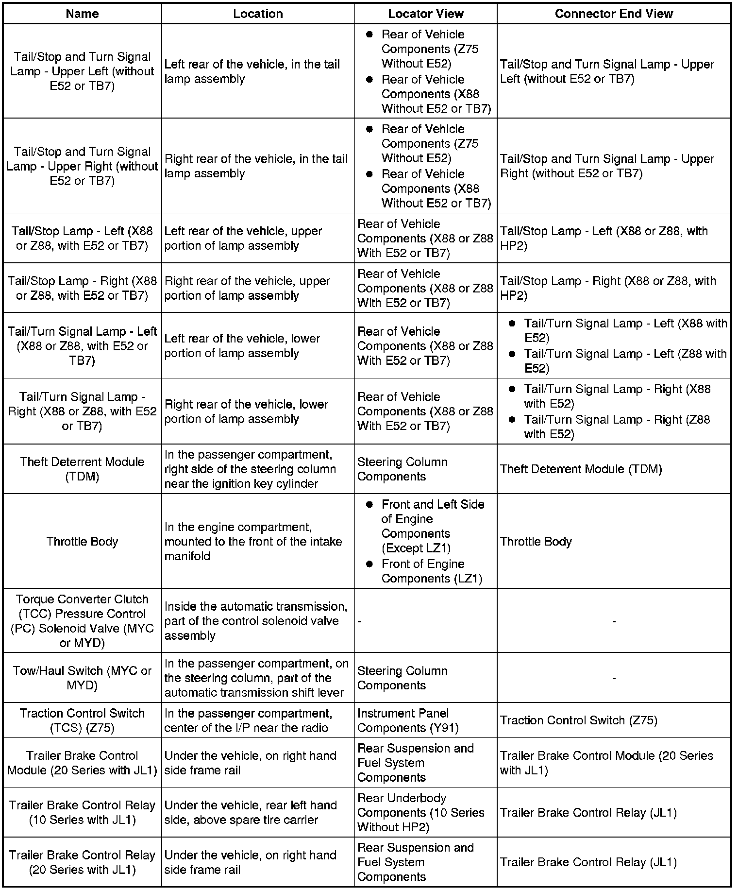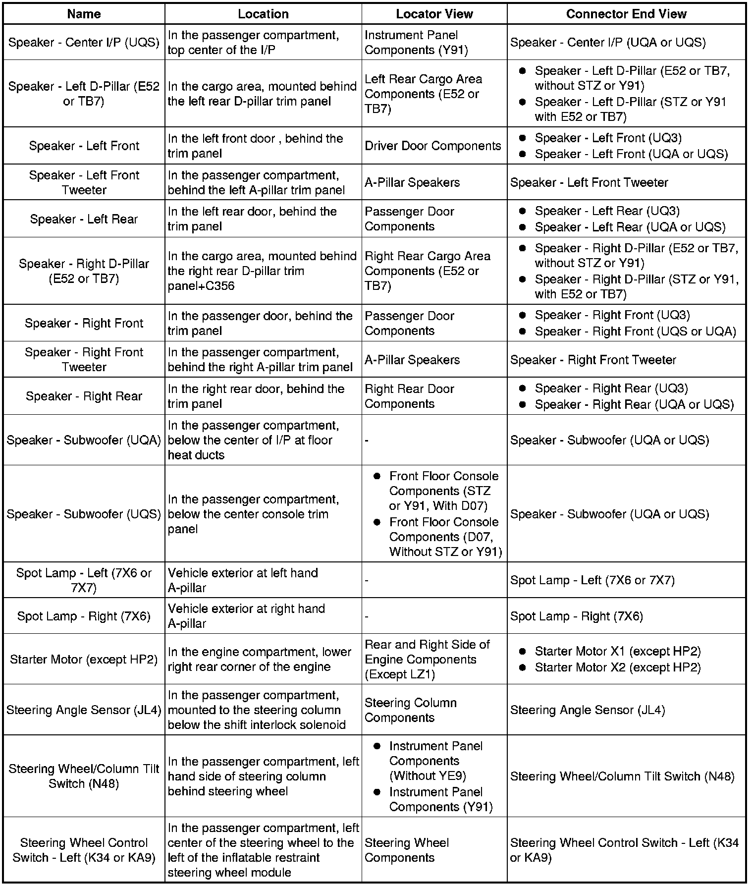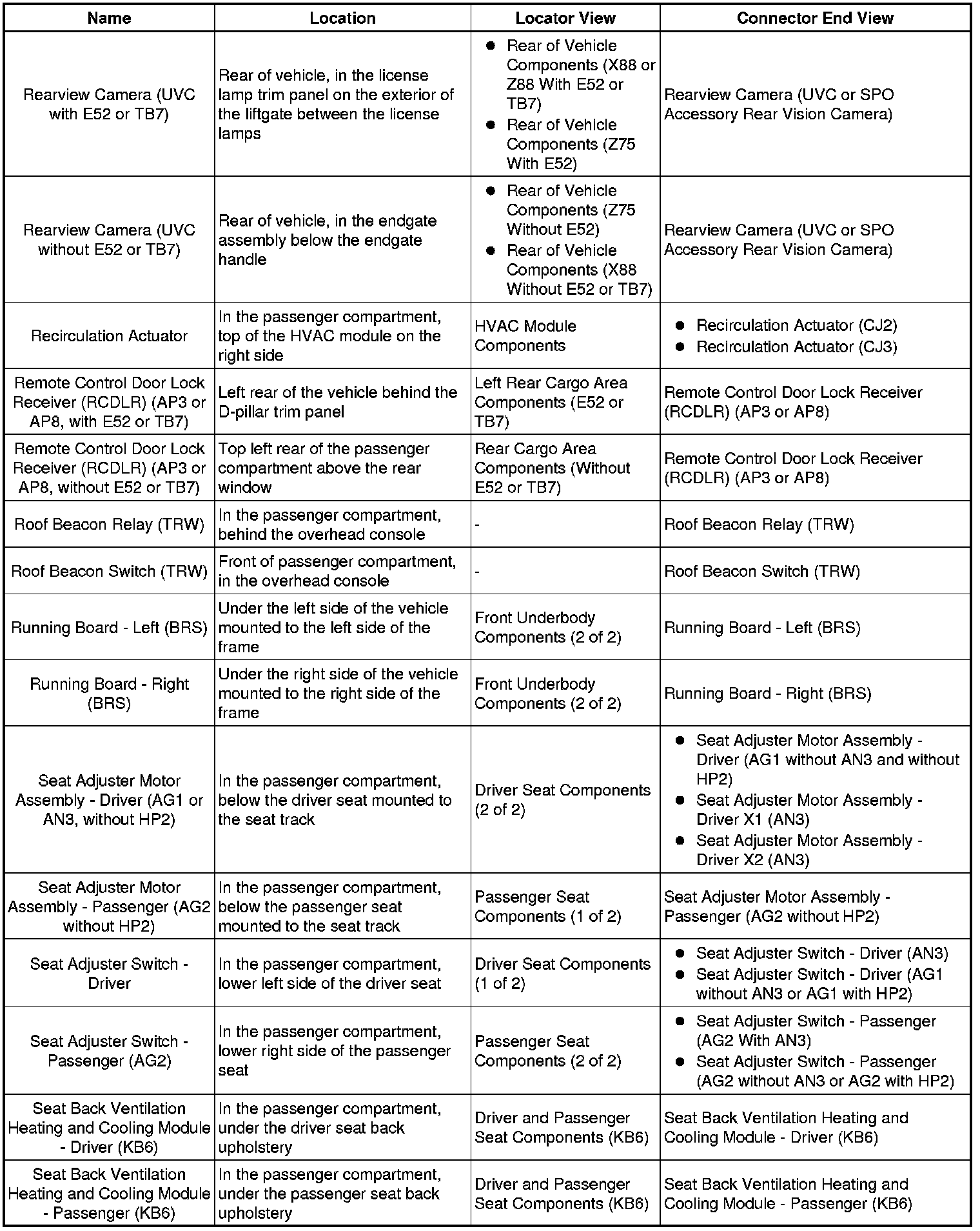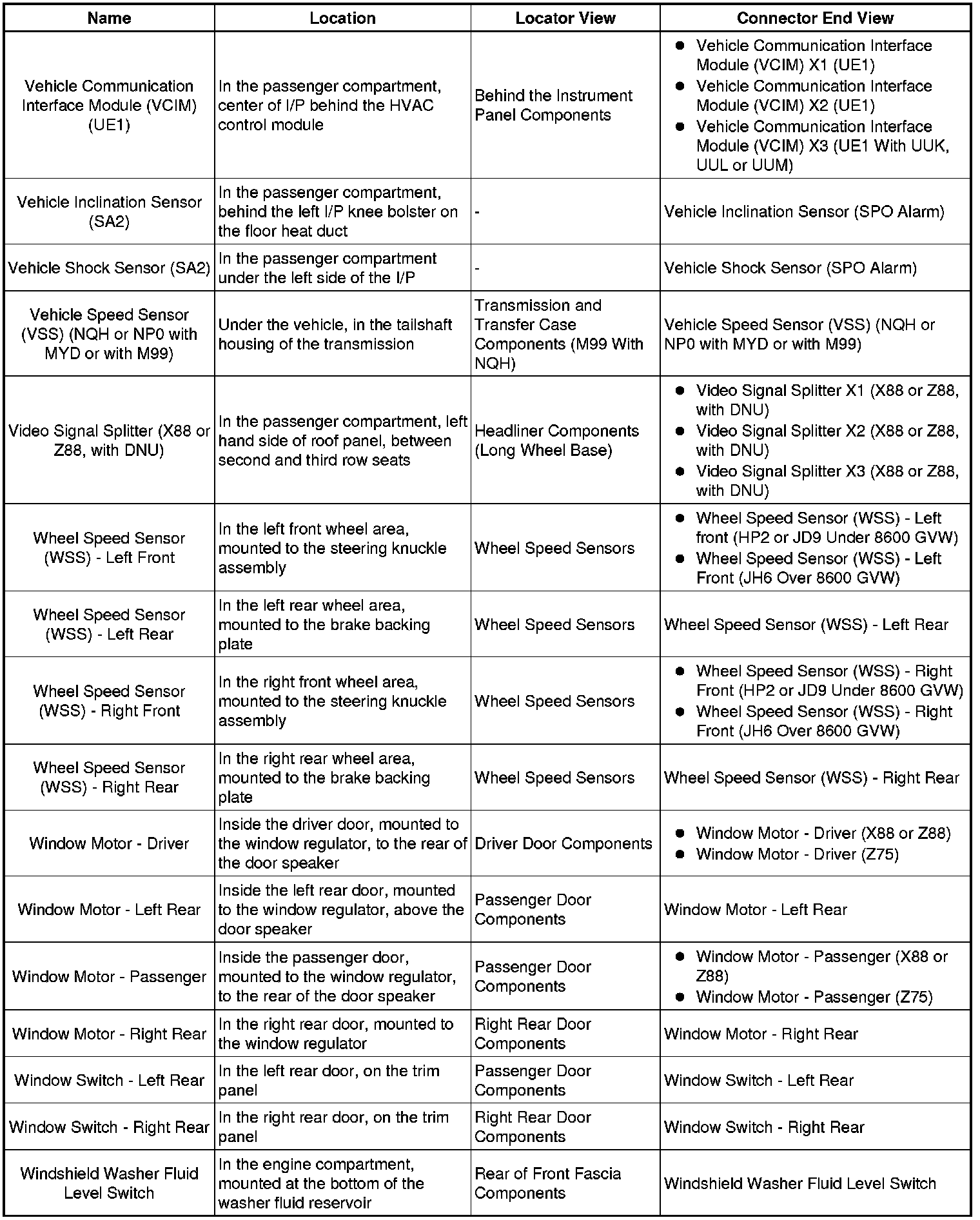 Master Electrical Component List