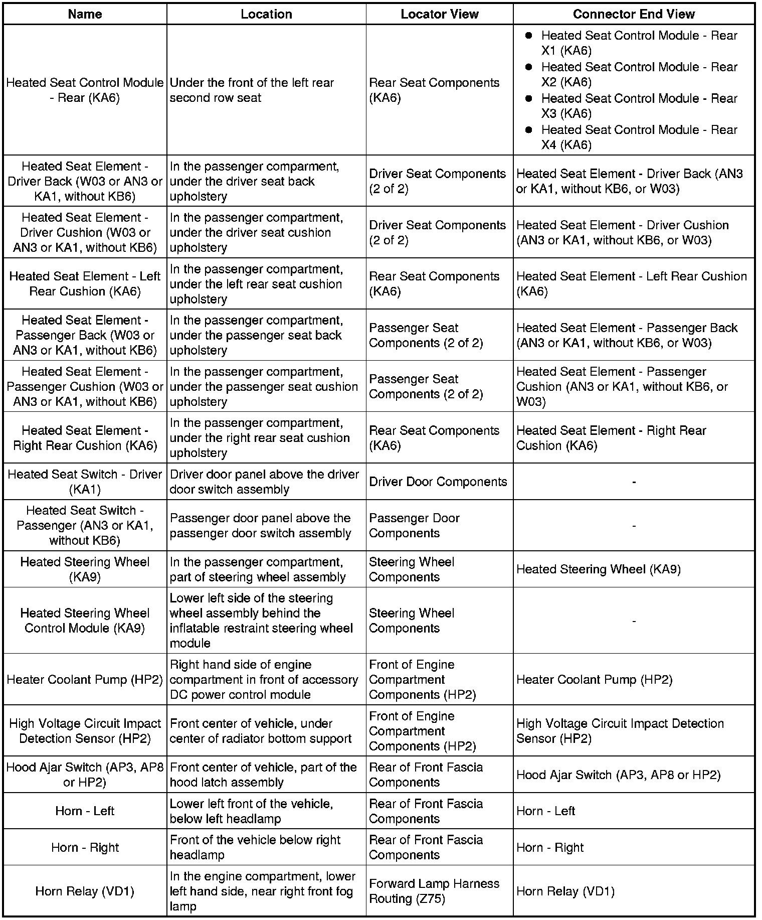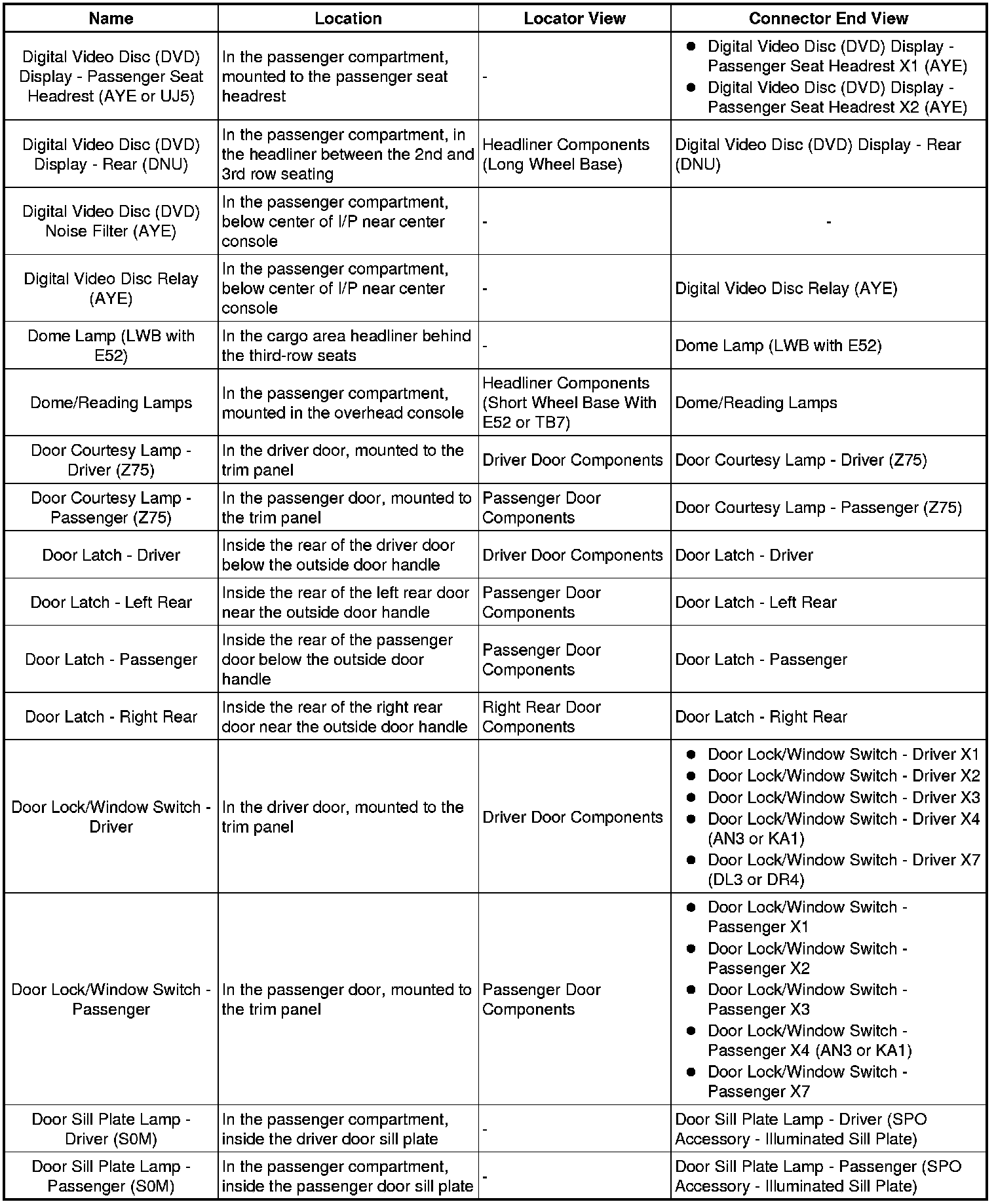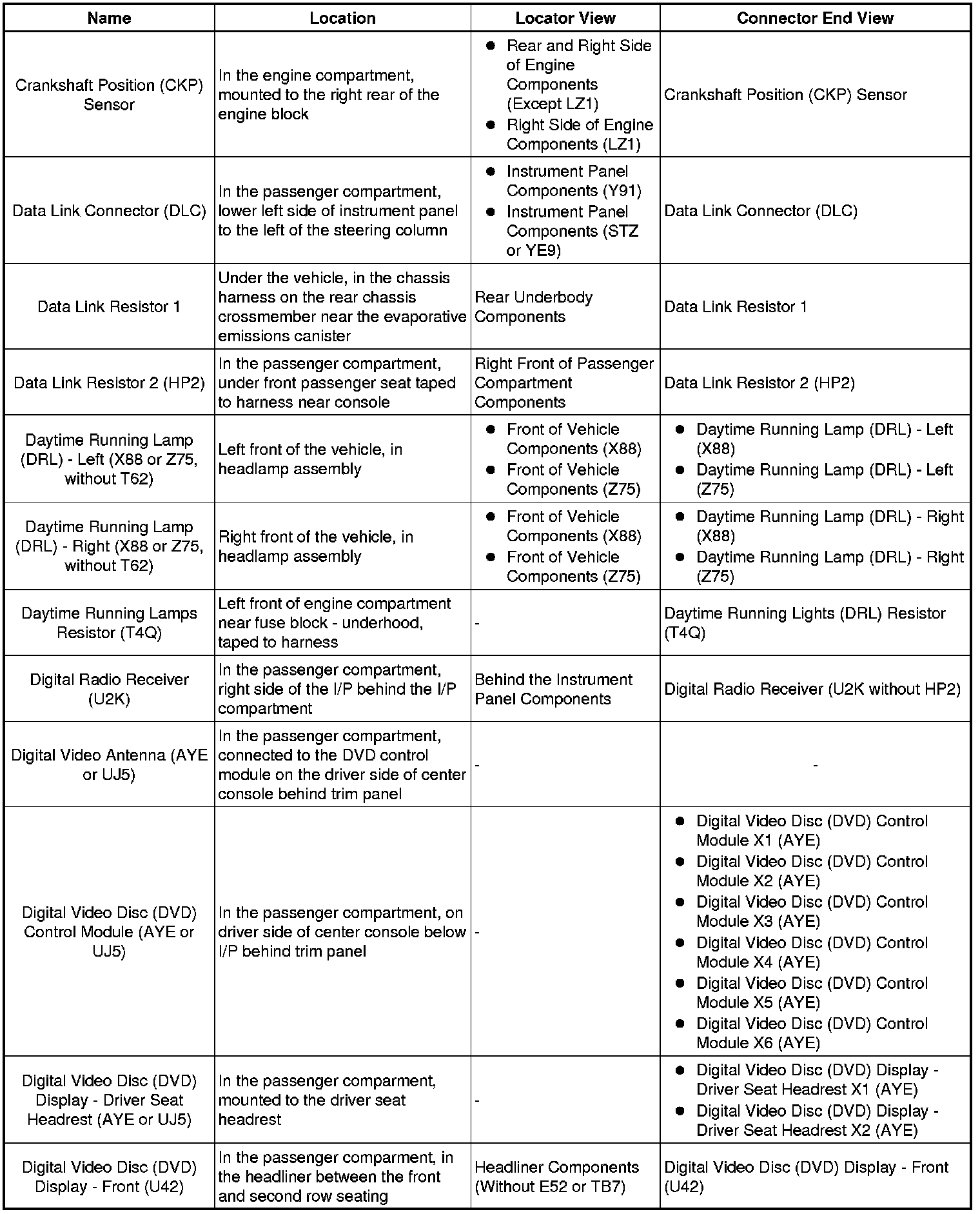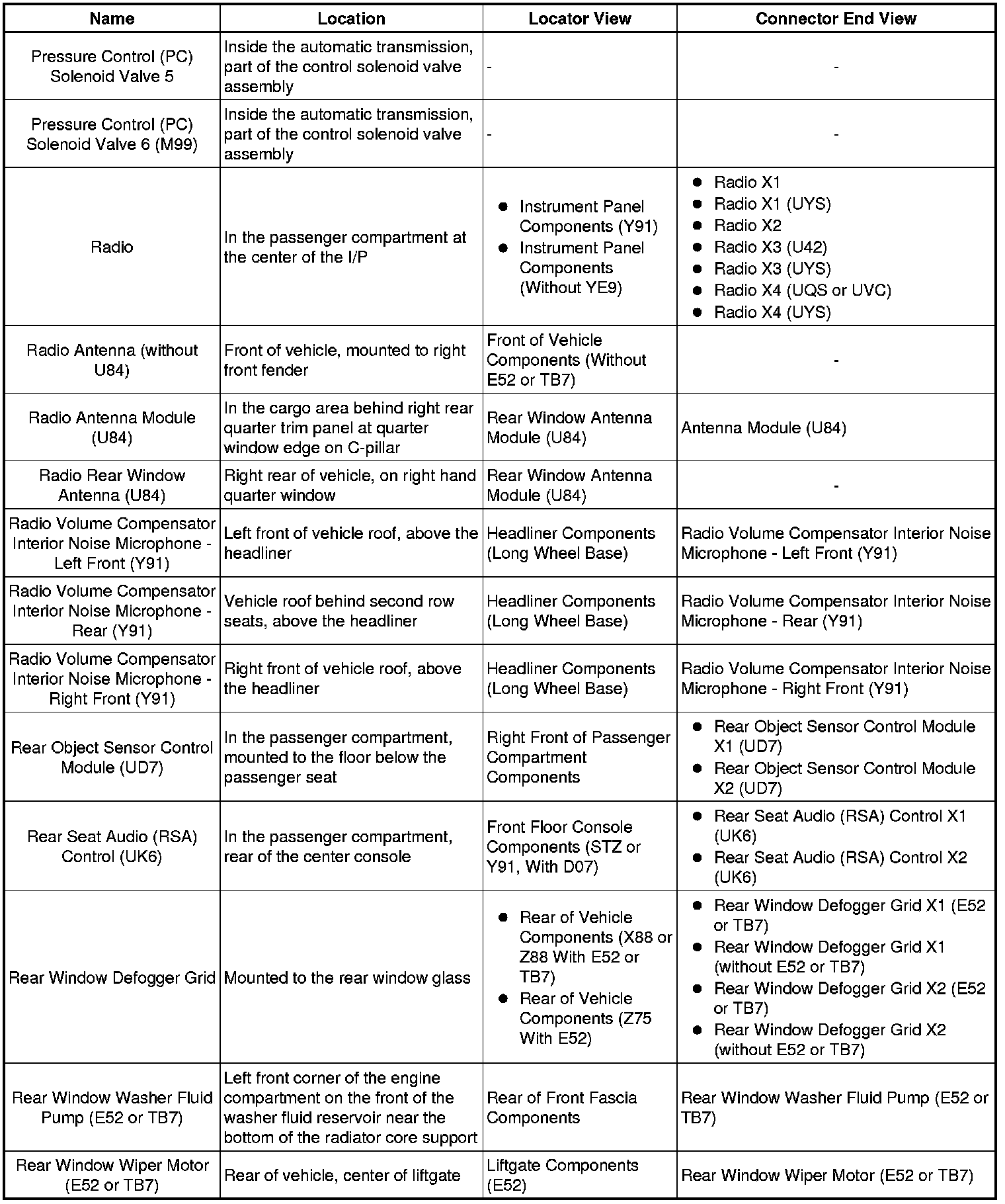 Master Electrical Component List
