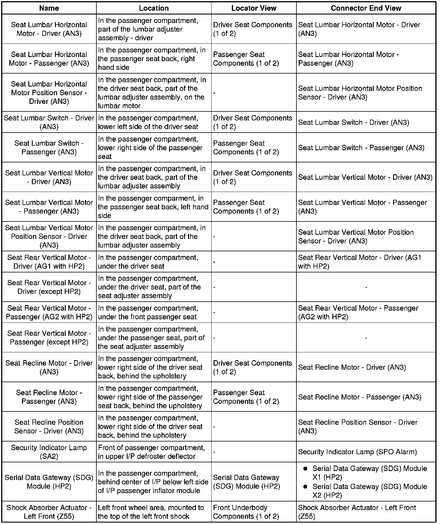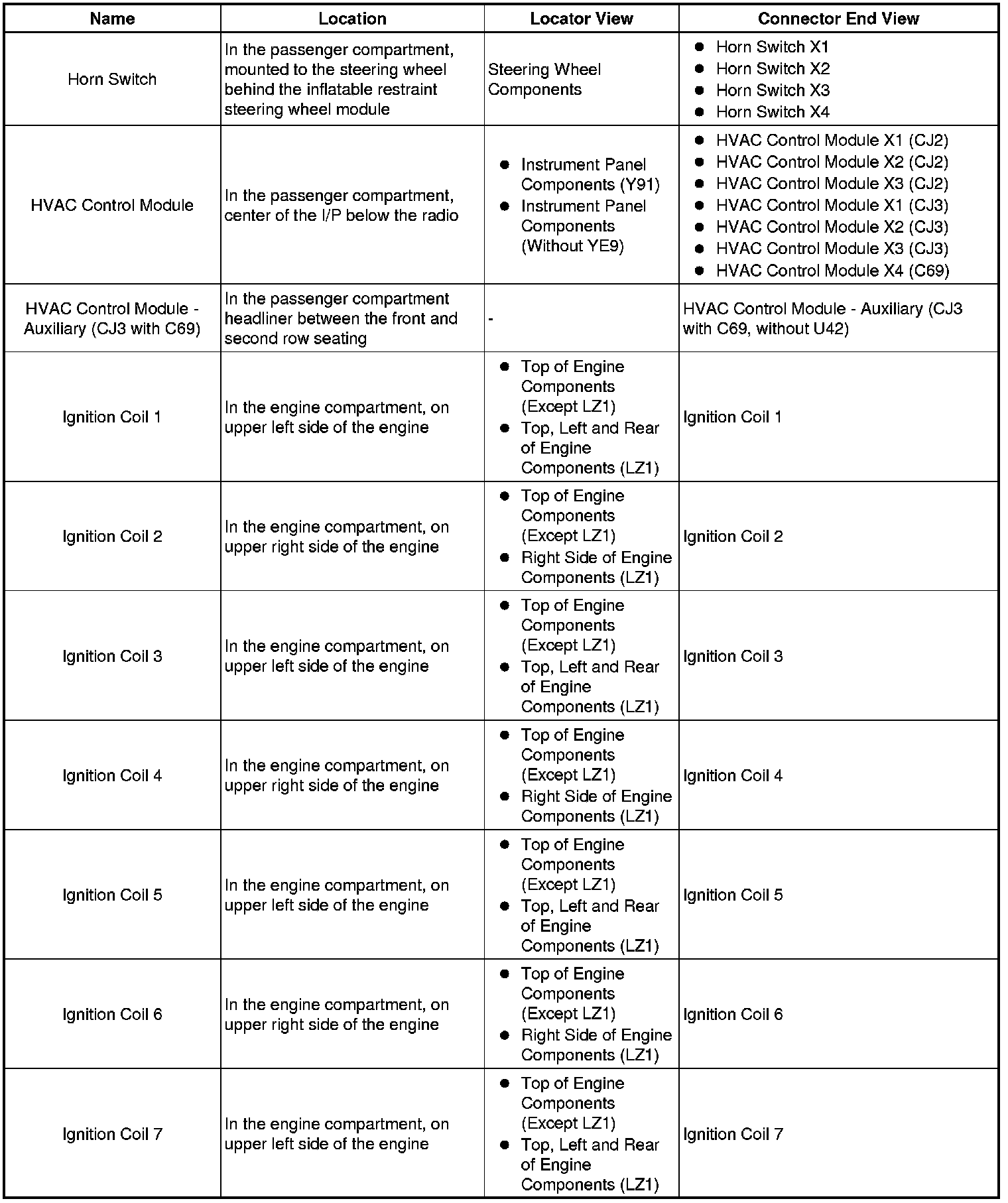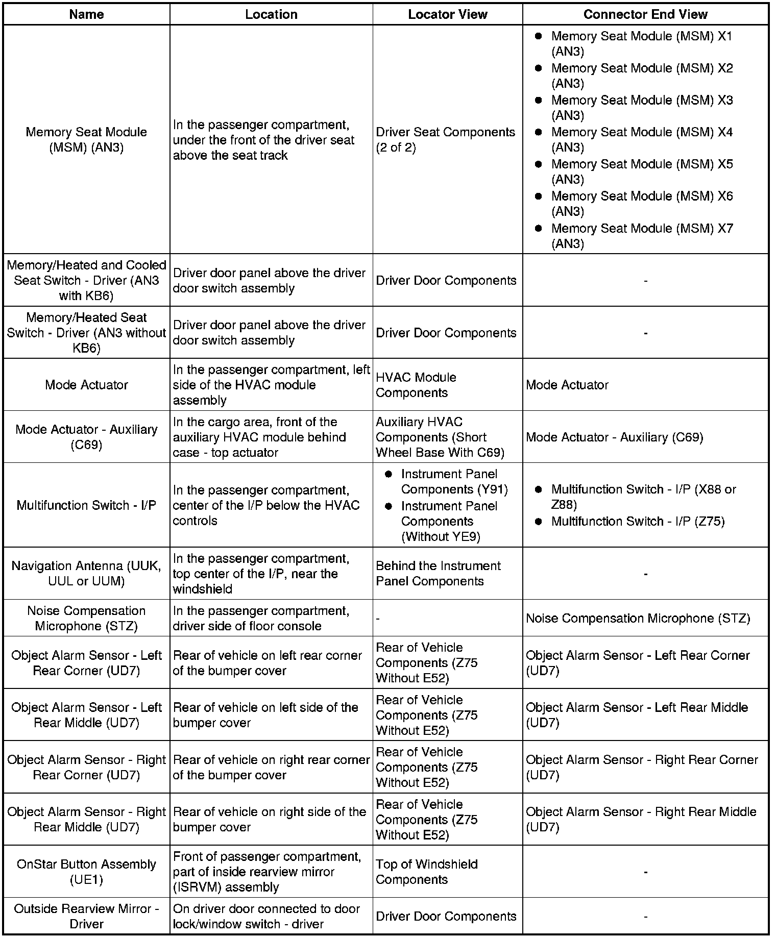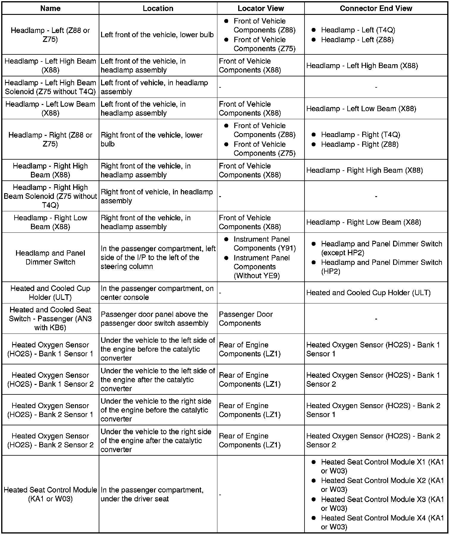 Master Electrical Component List