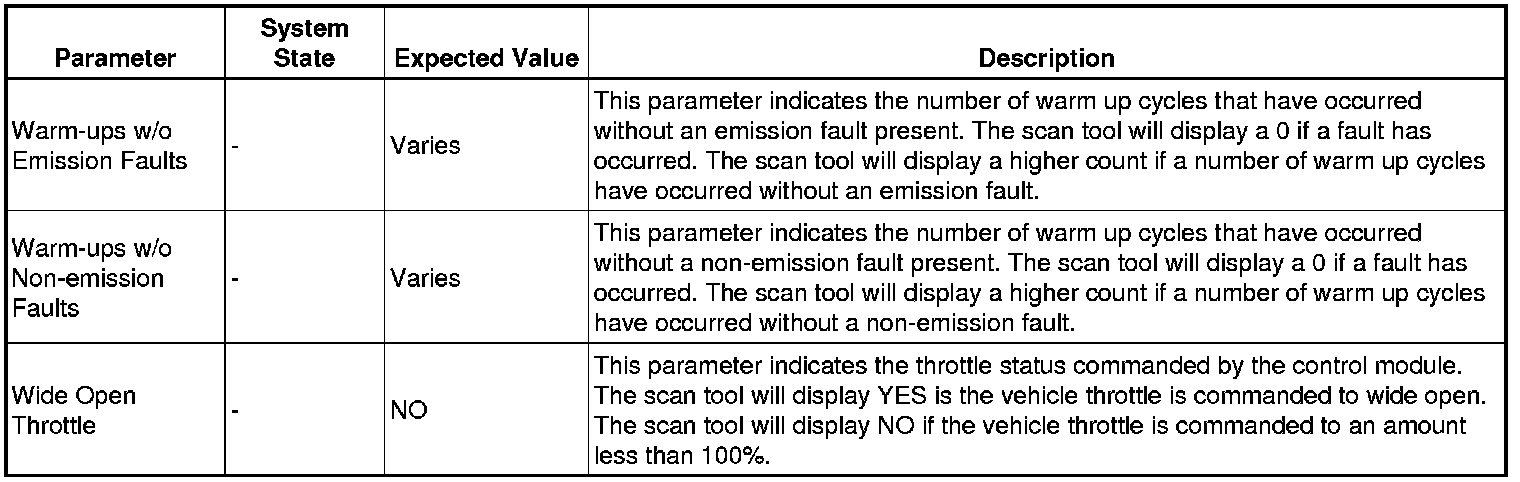 The scan tool values from a properly running engine may be used for comparison with the engine you are diagnosing. The engine scan tool data list represents values that would be seen on a normally running engine.