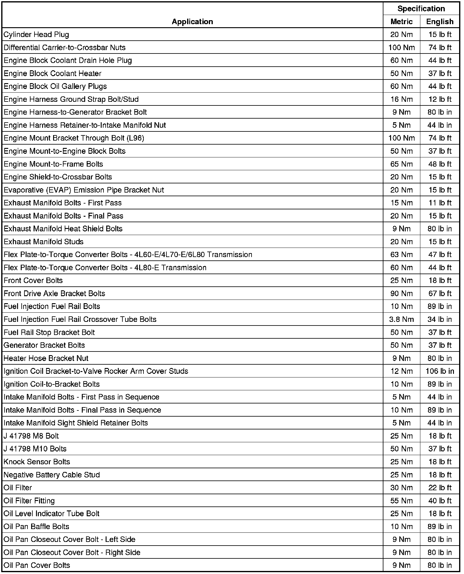 Fastener Tightening Specifications