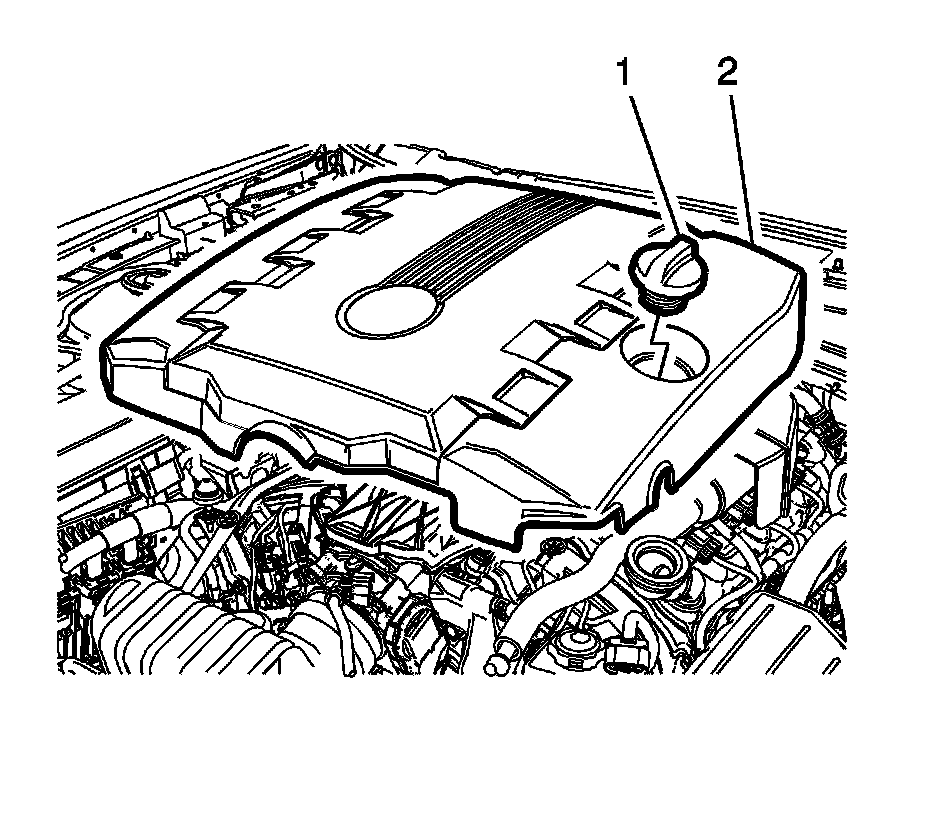 7. Install the intake manifold cover (2). Refer to Intake Manifold Cover Replacement - Front Intake Manifold Cover Replacement - Front.