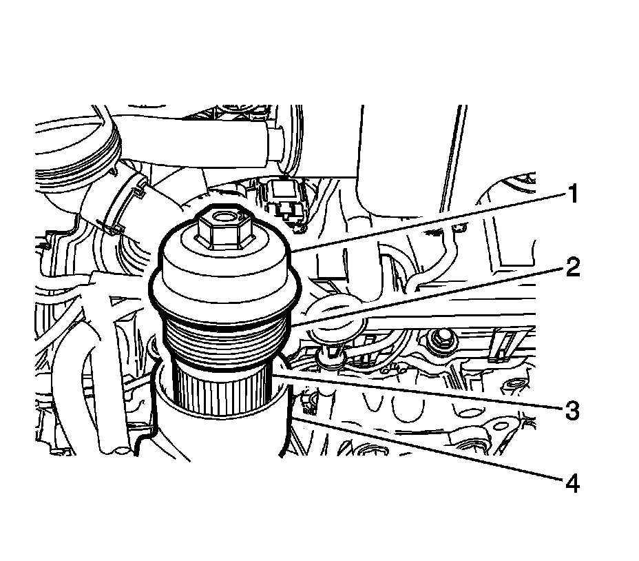 4. Remove and discard the oil filter cartridge (3).