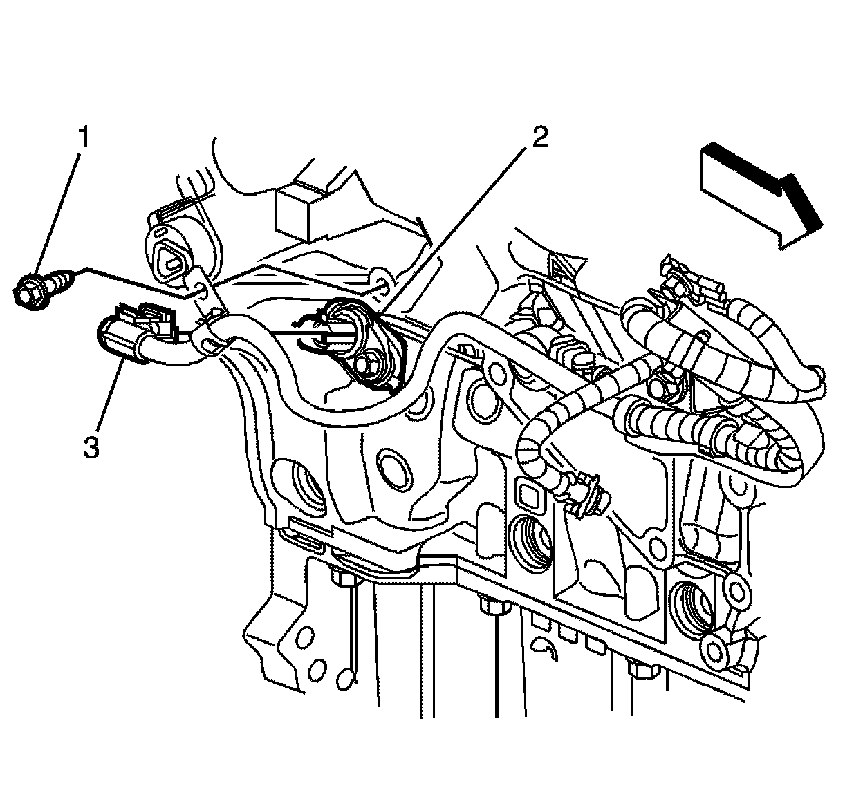 2. Install the CKP sensor to engine block retaining bolt♦(1) and tighten to 10♦Nm♦(89♦lb♦in).
