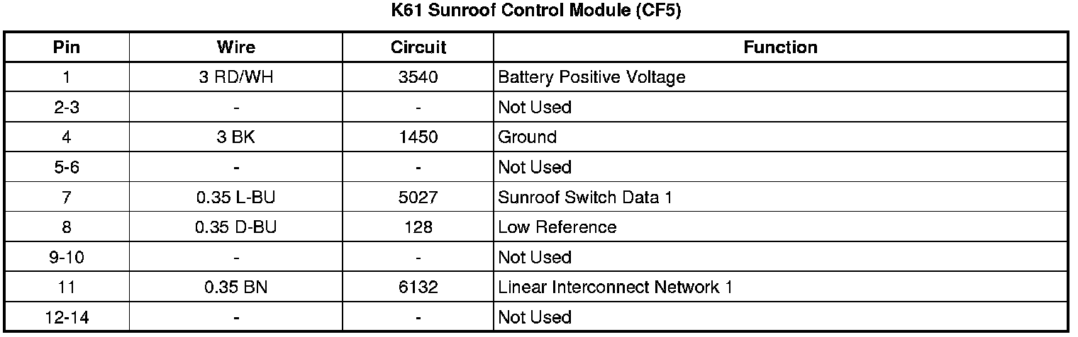 K61 Sunroof Control Module (CF5)