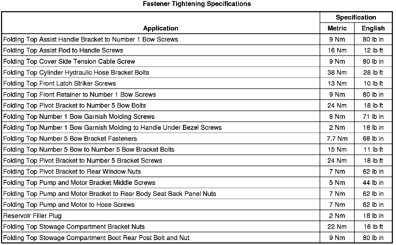 Fastener Tightening Specifications