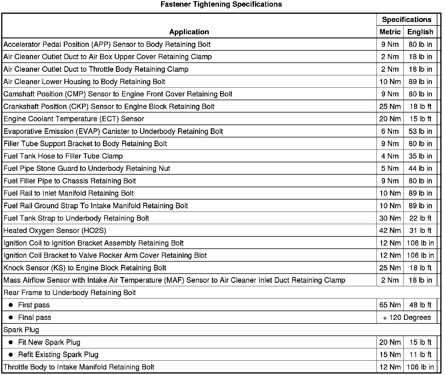 Fastener Tightening Specifications