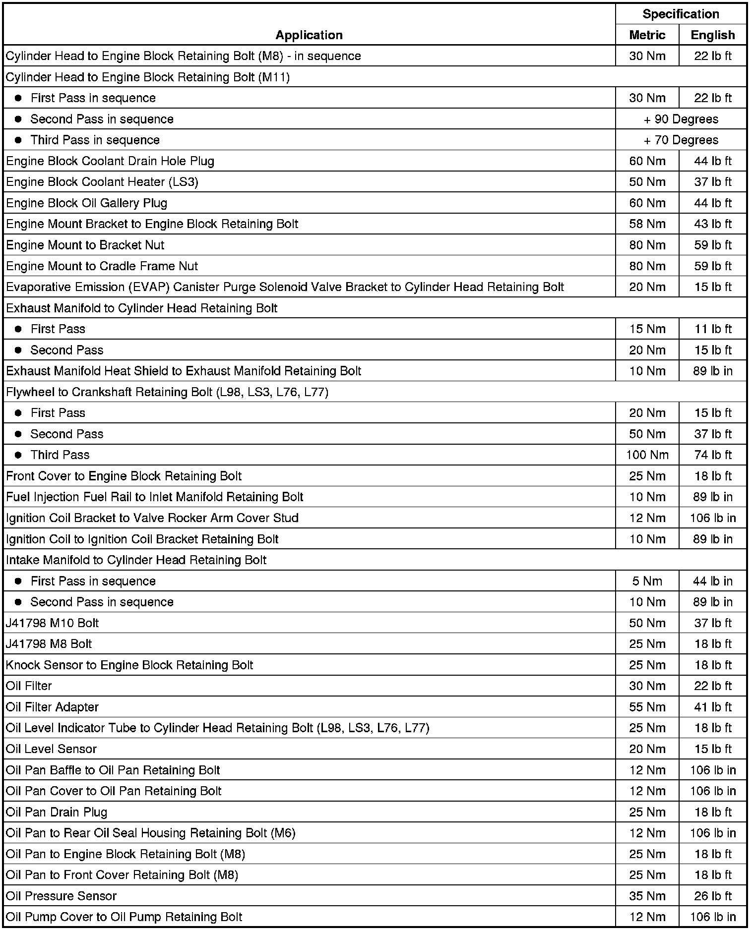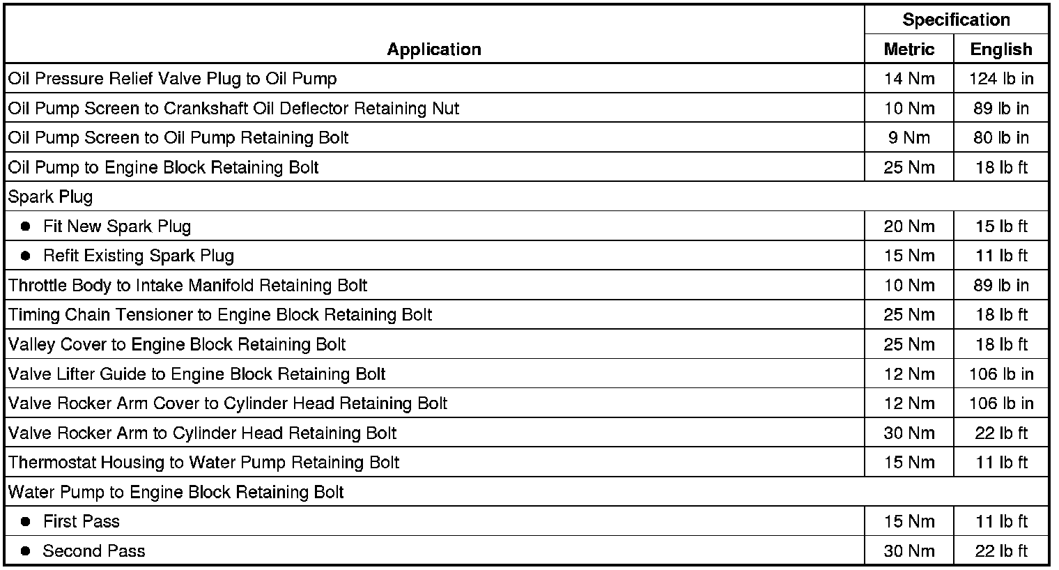 Fastener Tightening Specifications