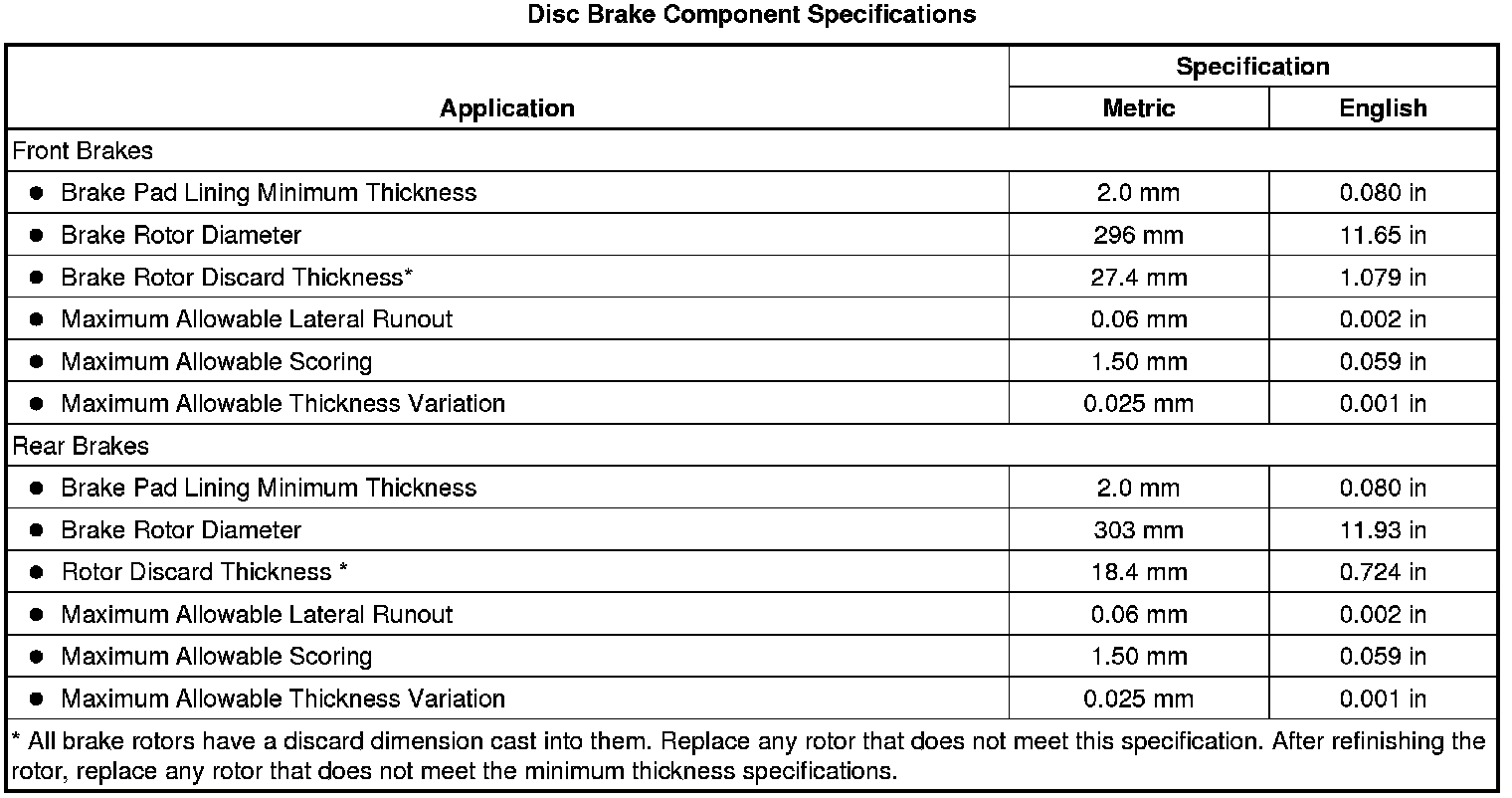 Disc Brake Component Specifications