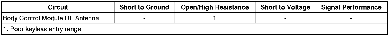The keyless entry system is a vehicle entry device. The keyless entry will unlock the vehicle doors when a corresponding button on the keyless entry transmitter is pressed. This is accomplished by the key fob sending a radio frequency to the body control module (BCM). The signal is received by an external antenna connected to the BCM. The BCM interprets the signal and activates the requested function. A low transmitter battery or radio frequency (RF) interference from aftermarket devices such as 2-way radios, power inverters, cellular phone chargers, computers, etc. may cause a system malfunction. High RF traffic areas, such as gas stations which use pay-at-the-pump RF transponders, may also cause interference that could lead to a malfunction.