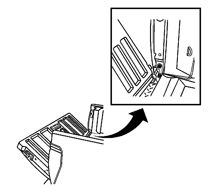 9. Remove the endgate hinge from the endgate. Refer to Endgate Lower Hinge Replacement - Endgate Side Endgate Lower Hinge Replacement - Endgate Side.