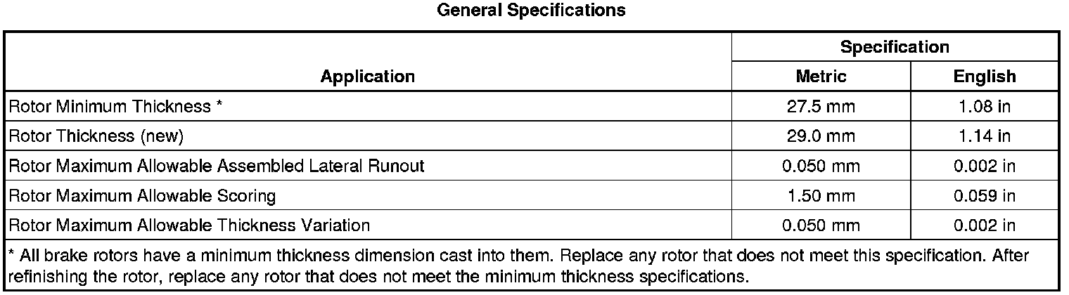 Disc Brake Component Specifications