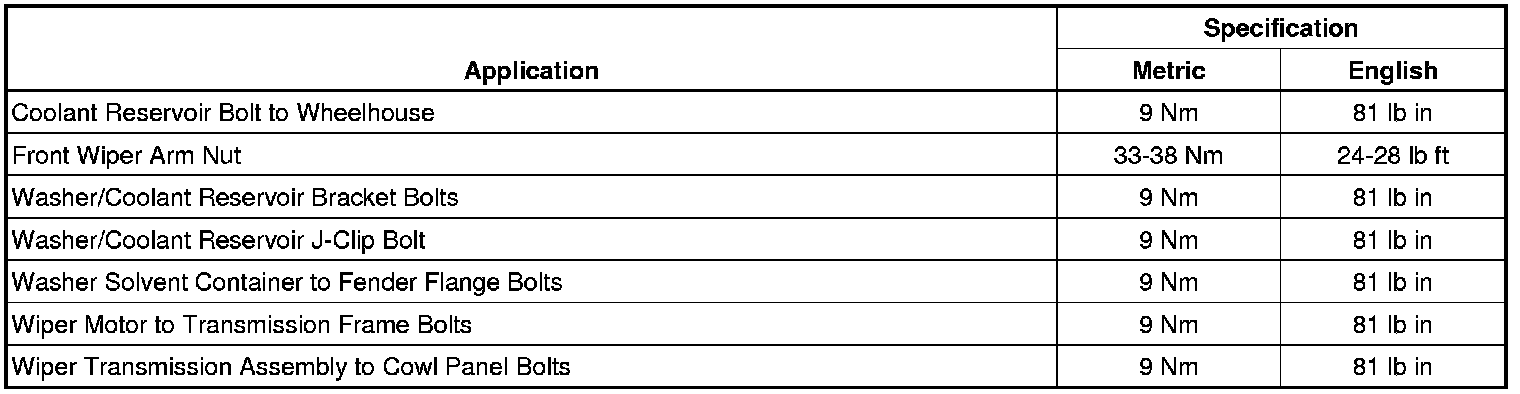 Wiper and Washer Systems: Specifications
