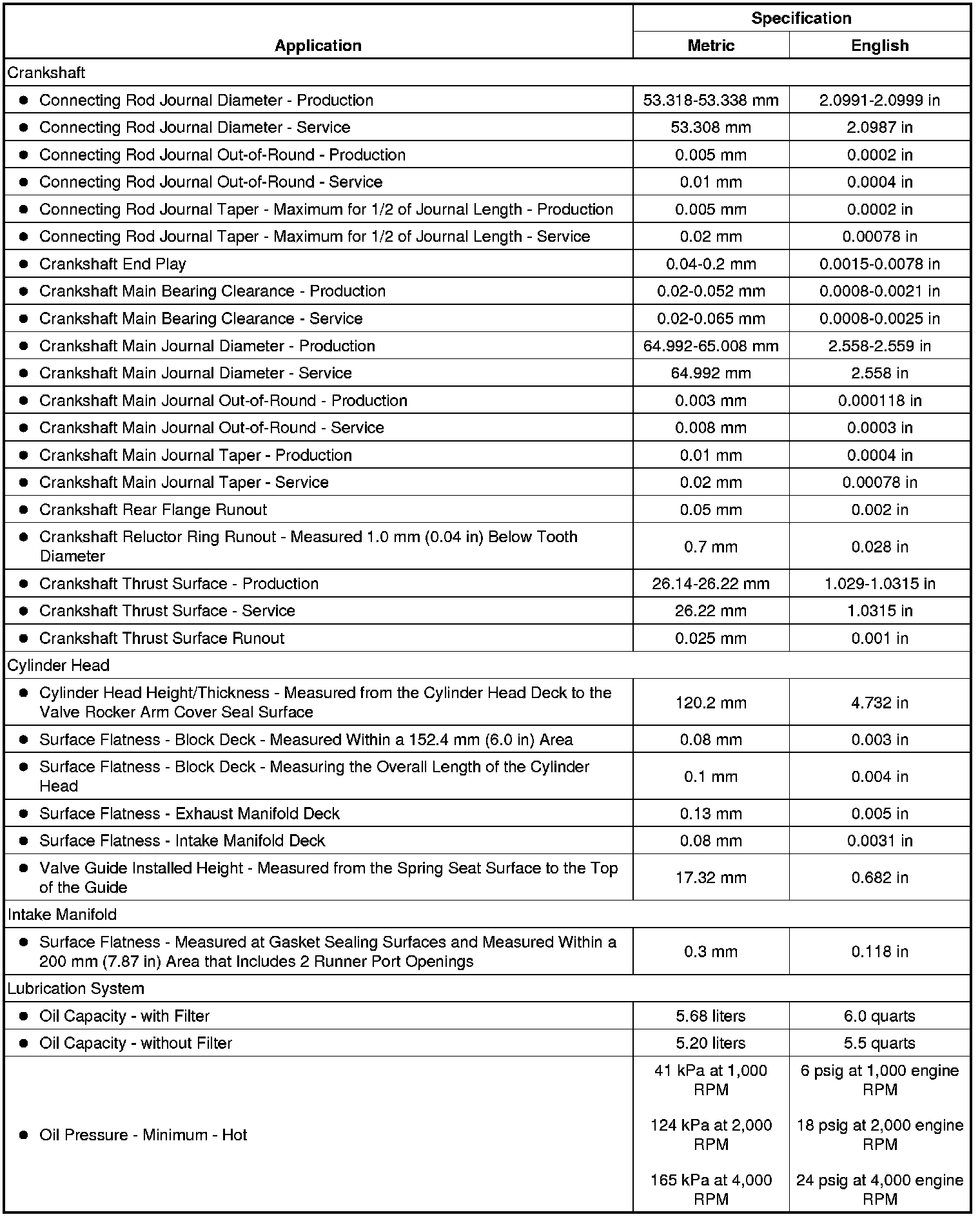 Engine Mechanical Specifications