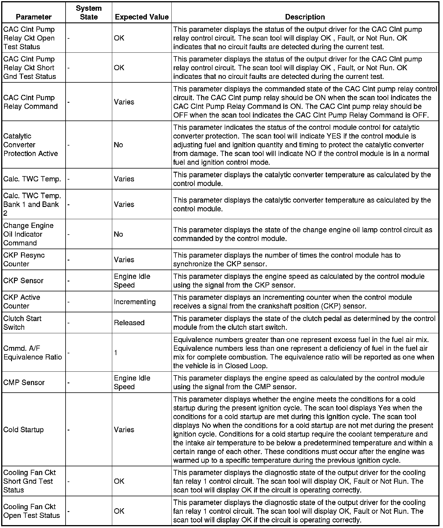 The Engine Control Module Scan Tool Data List contains all engine-related parameters that are available on the scan tool. The list is arranged in alphabetical order. A given parameter may appear in any one of the data lists, and in some cases may appear more than once, or in more than one data list in order to group certain related parameters together.