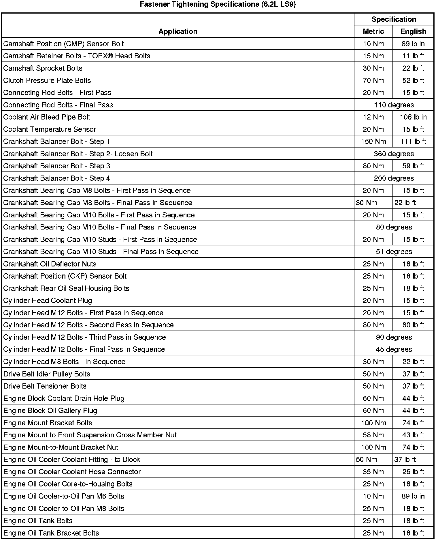 Fastener Tightening Specifications (6.2L LS9)