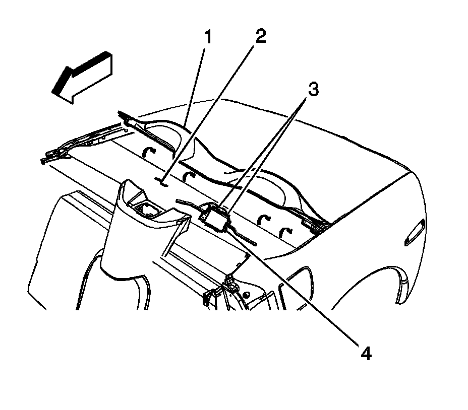 1. Install the module and connect the electrical connectors (3) to the folding top control module (4).