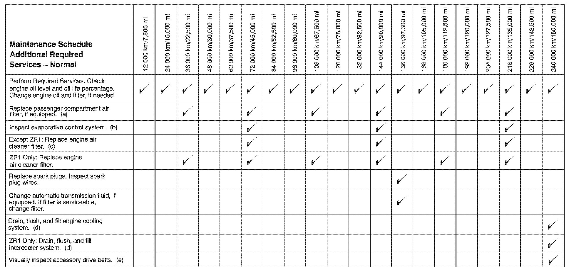 Footnotes - Maintenance Schedule Additional Required Services - Normal