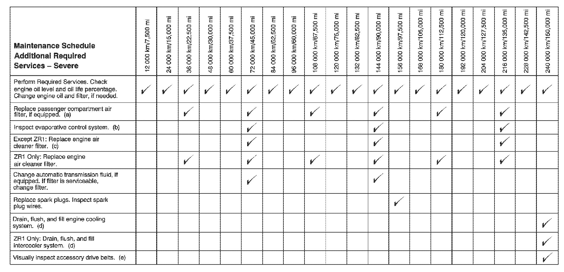 Footnotes - Maintenance Schedule Additional Required Services - Severe