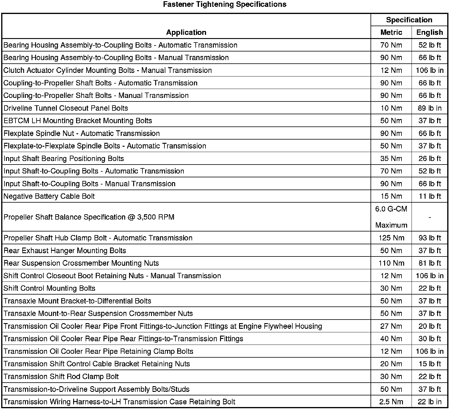 Fastener Tightening Specifications