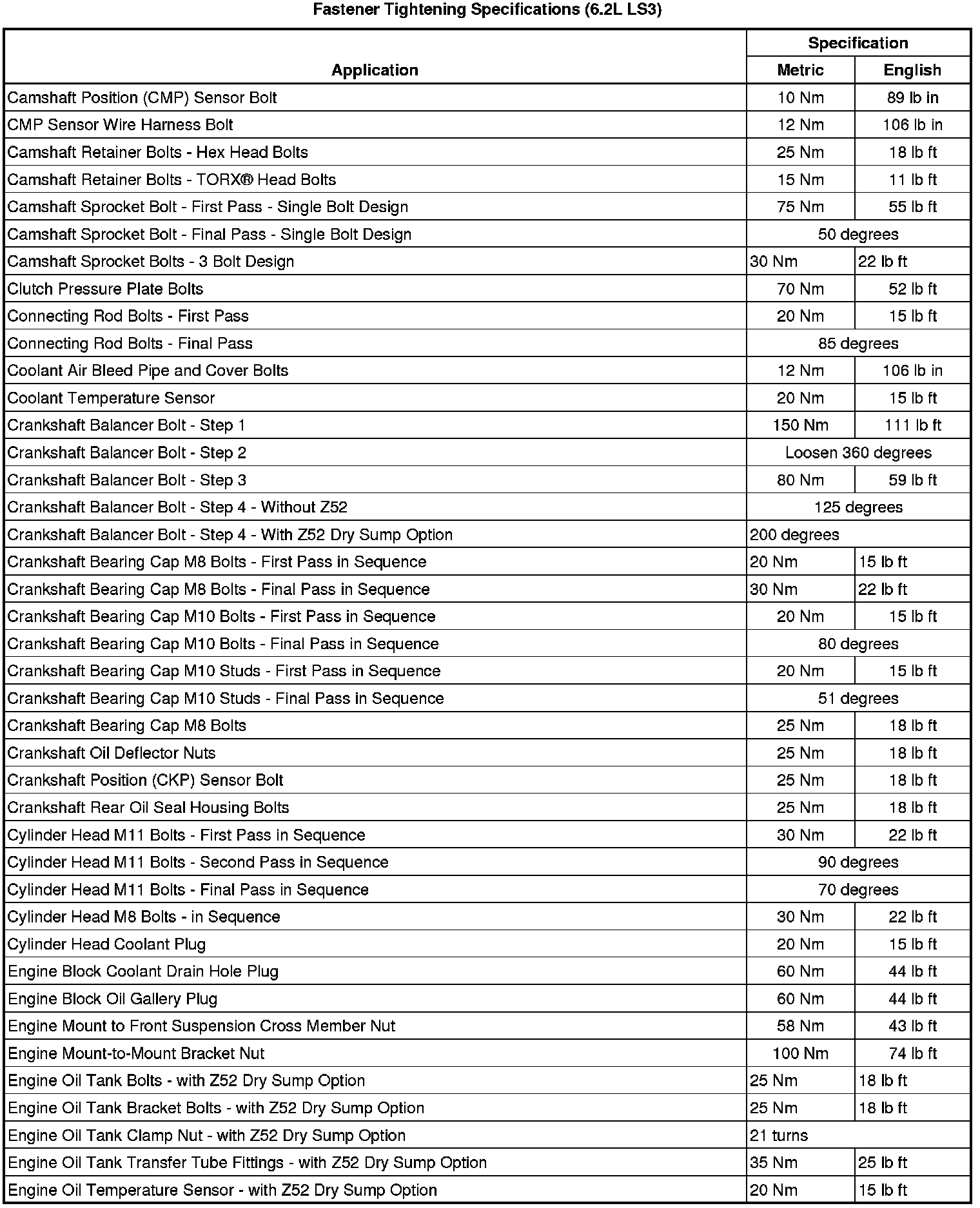 Fastener Tightening Specifications (6.2L LS3)