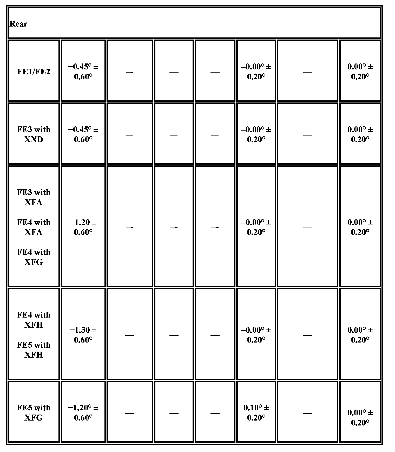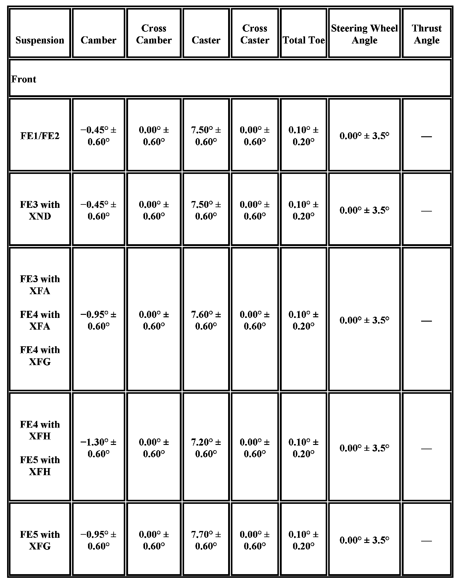 Wheel Alignment Specifications