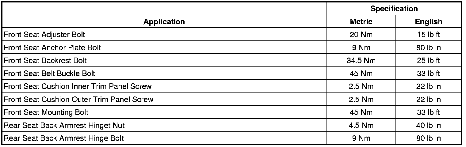 Seats: Specifications