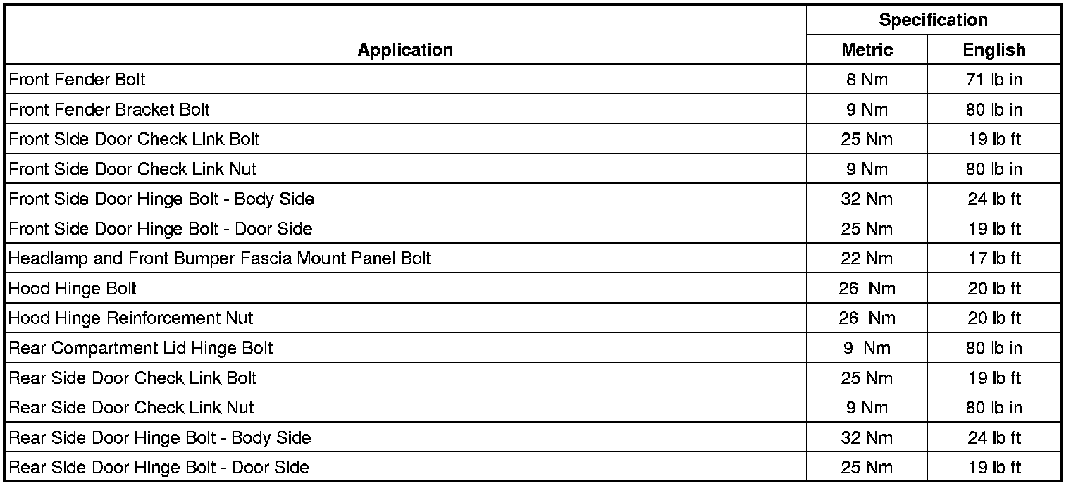Fastener Tightening Specifications