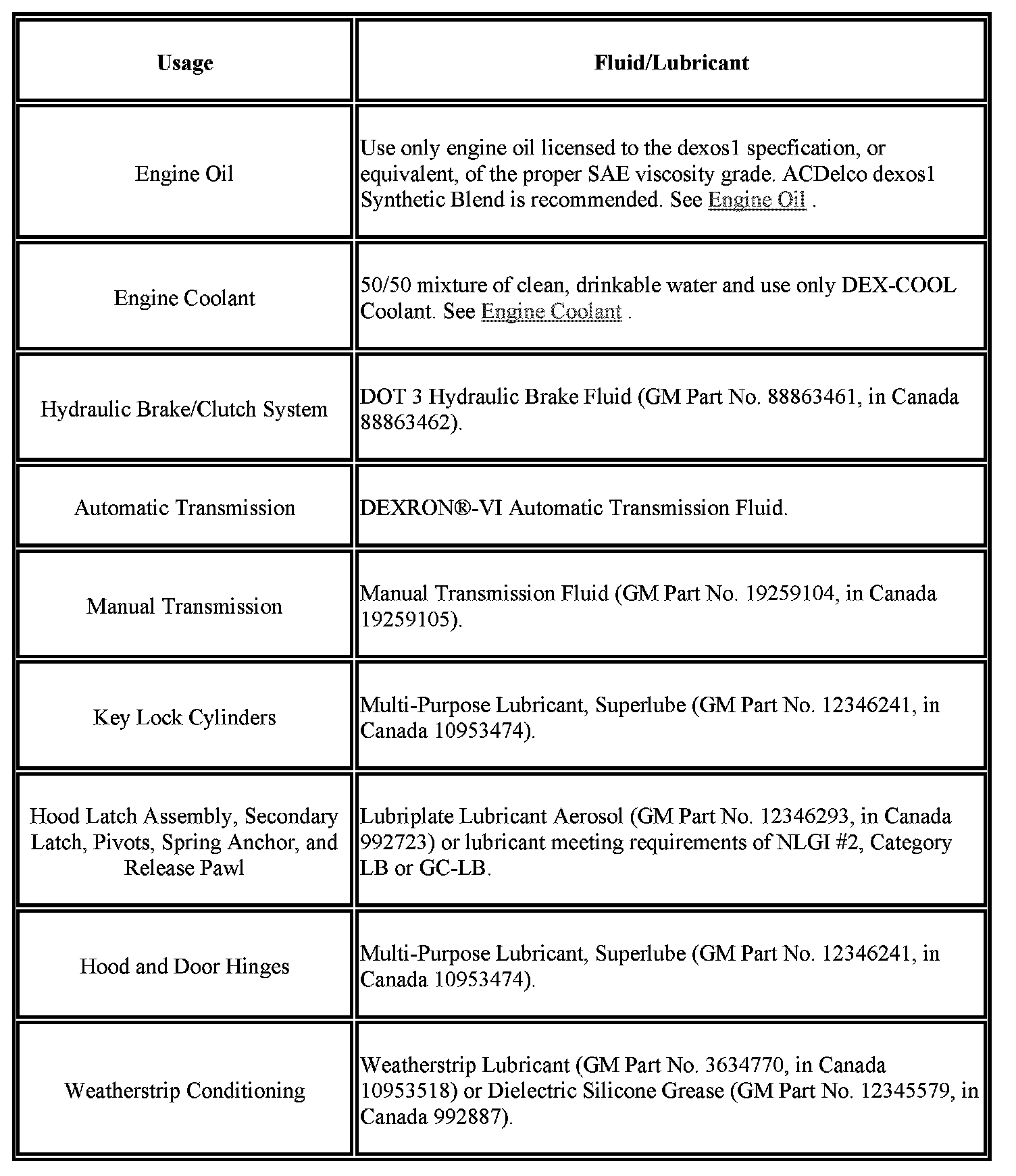 Fluid and Lubricant Recommendations