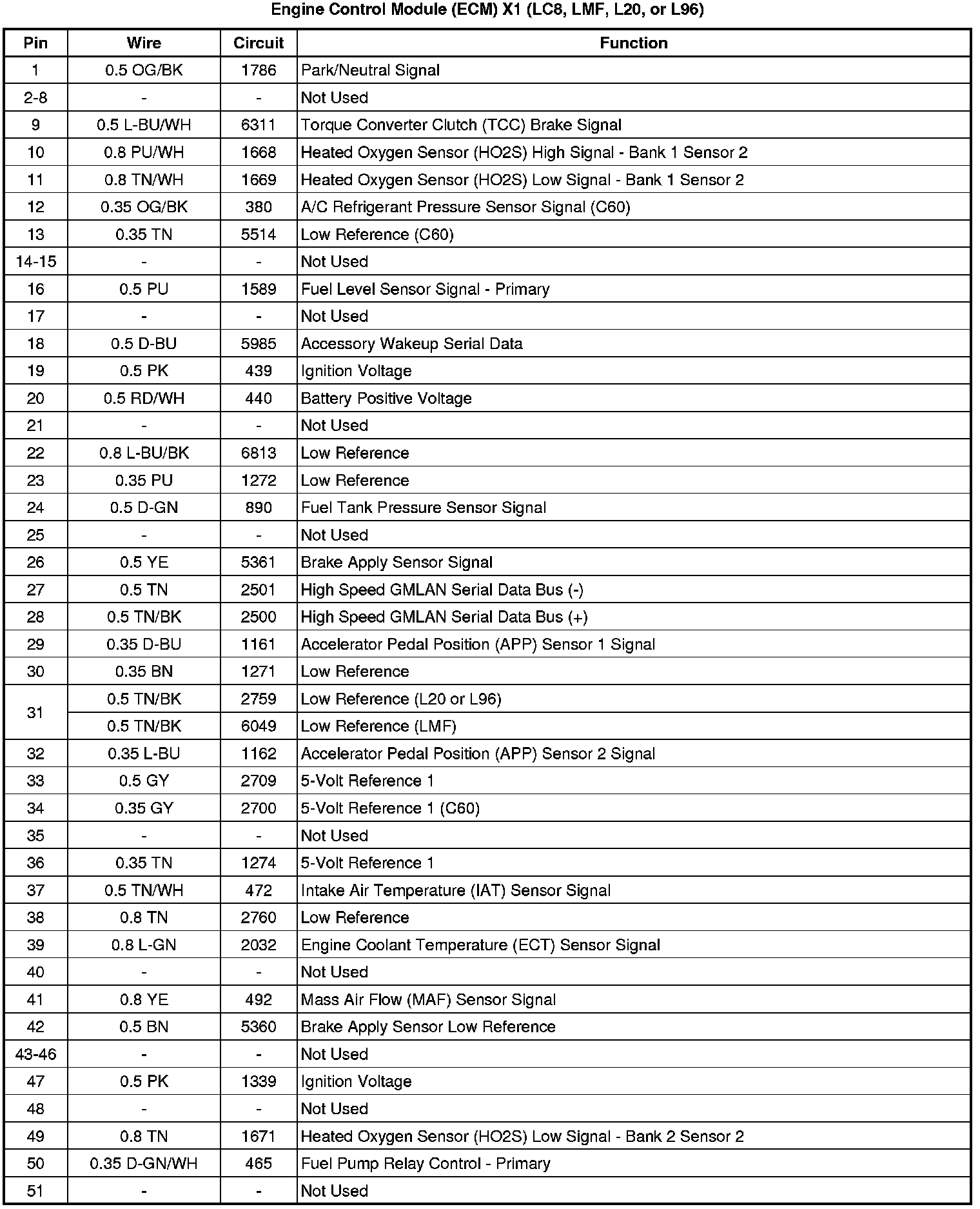 Engine Control Module (ECM) X1 (LC8, LMF, L20, or L96)