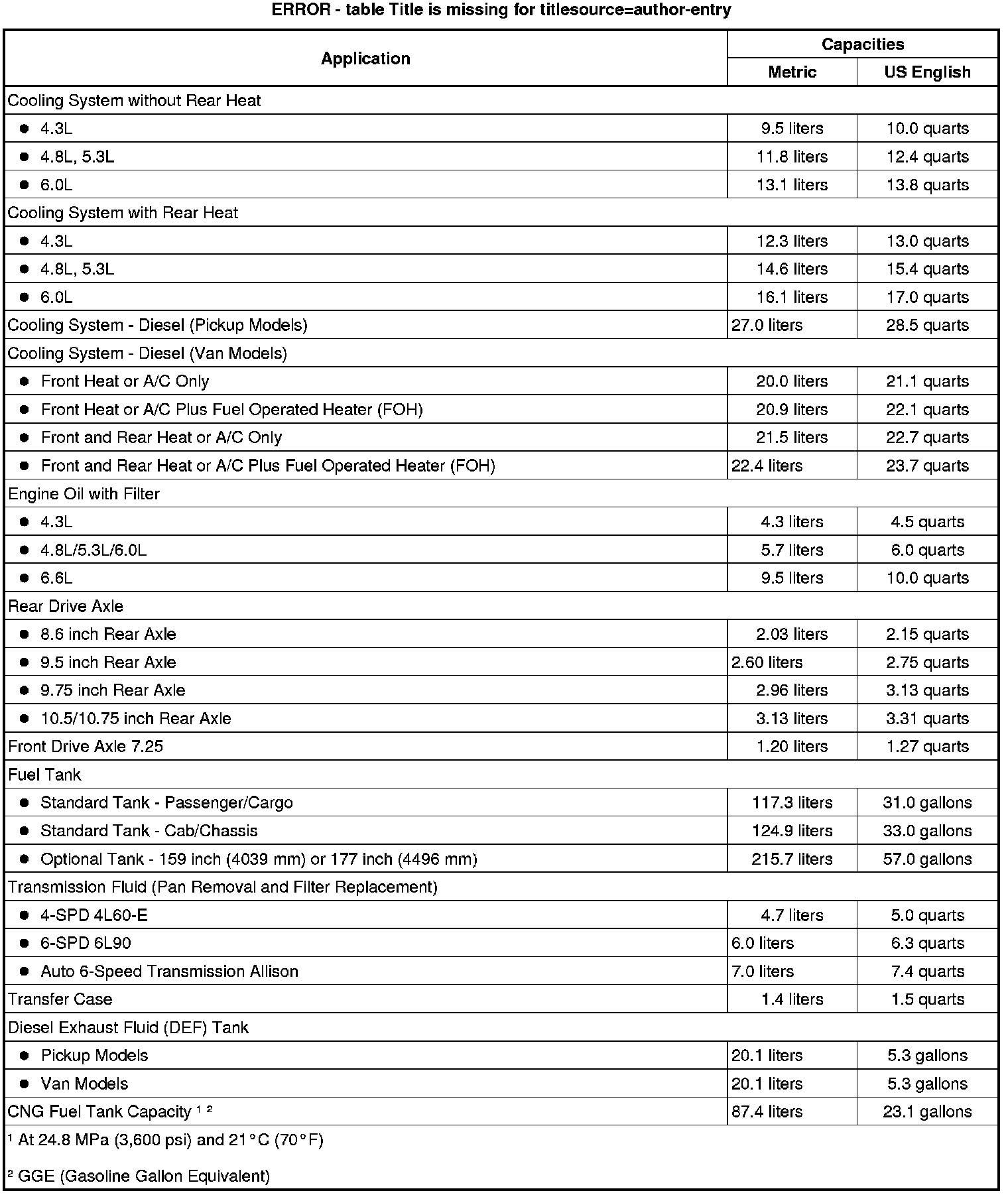 Home >> Chevrolet >> 2012 >> Express 1500 AWD V8-5.3L >> Repair and Diagnosis >> Specifications >> Capacity Specifications >> Maintenance