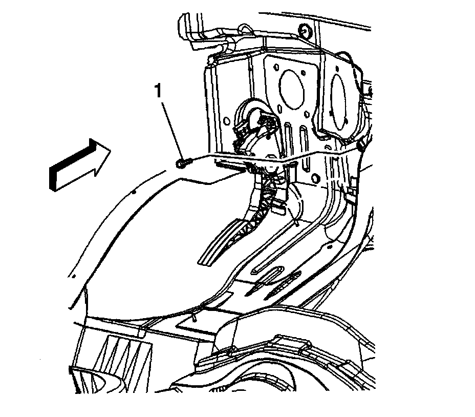 1. Install the accelerator pedal assembly (1) to the dash panel.