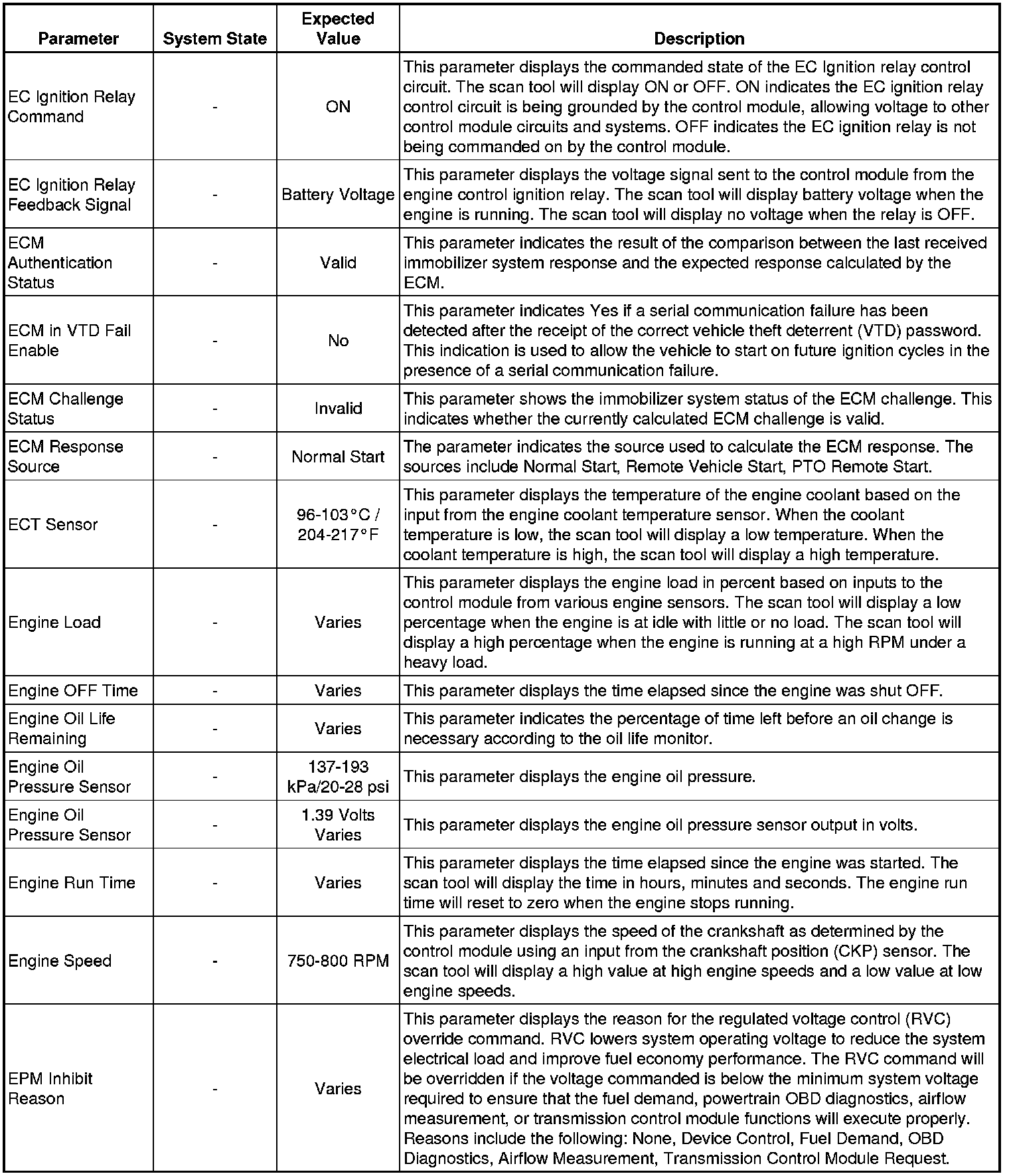The Engine Control Module (ECM) Scan Tool Data List contains all ECM related parameters that are available on the scan tool. The list is arranged in alphabetical order. A given parameter may appear in any one of the data lists, and in some cases may appear more than once, or in more than one data list, in order to group certain related parameters together.