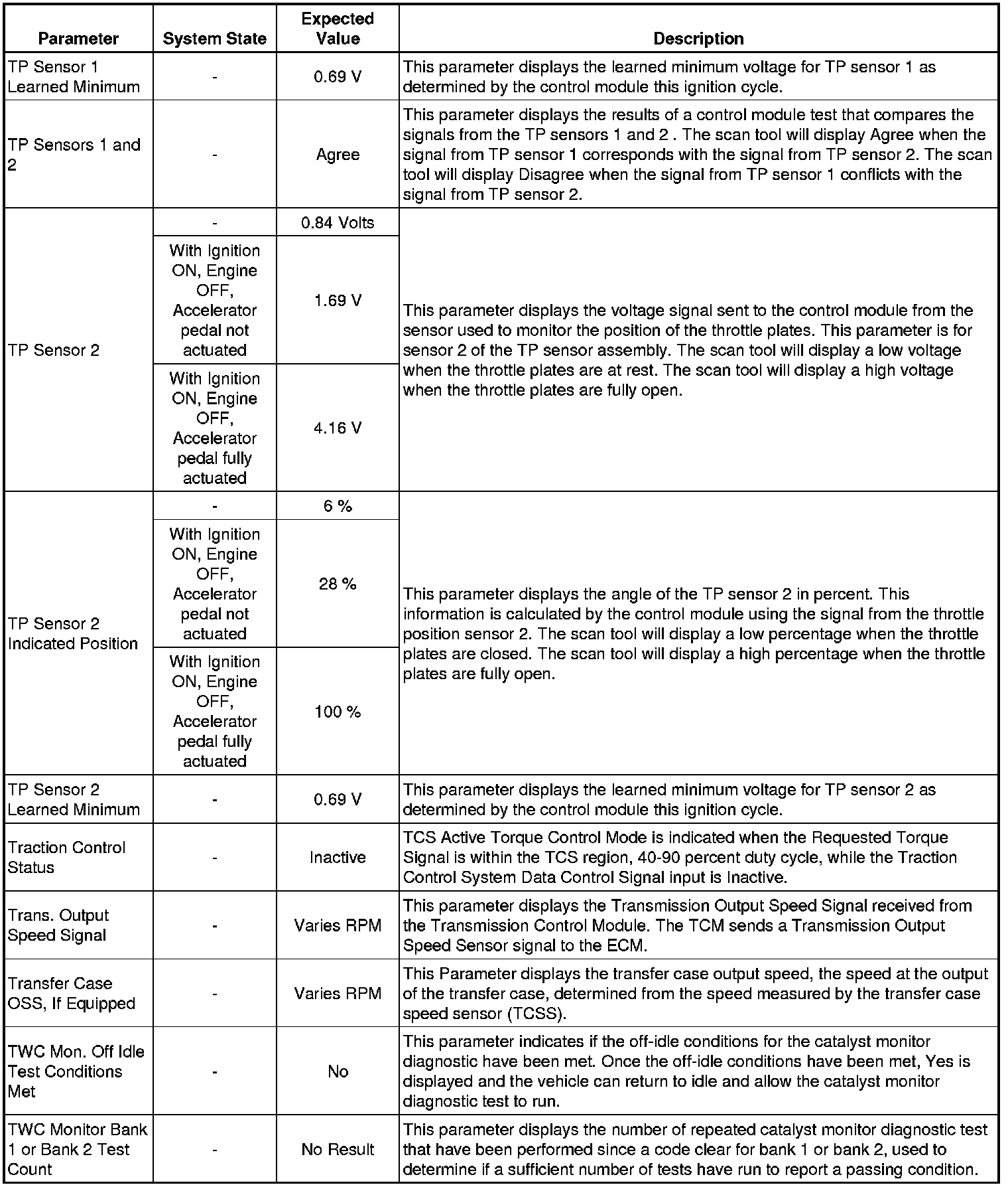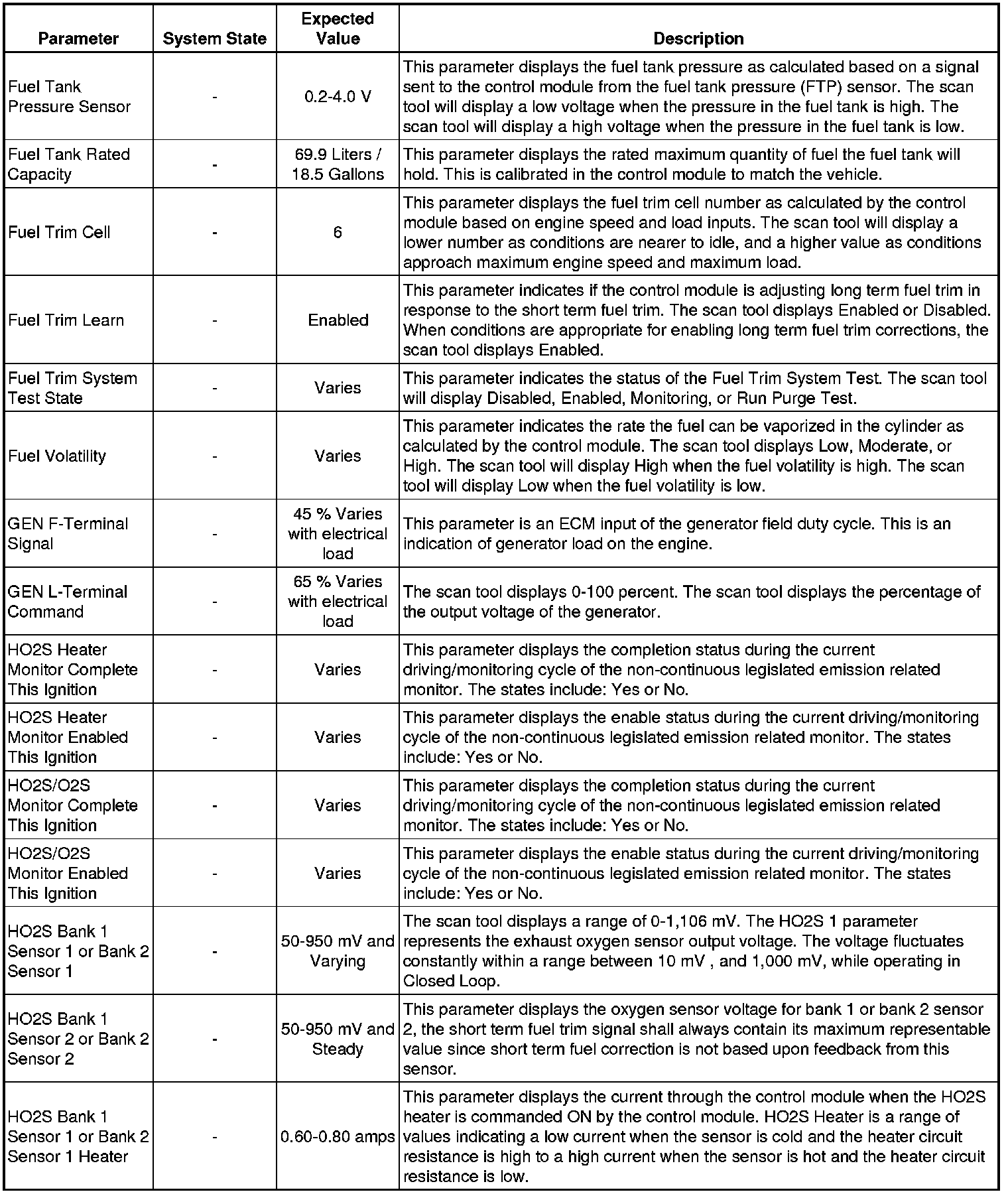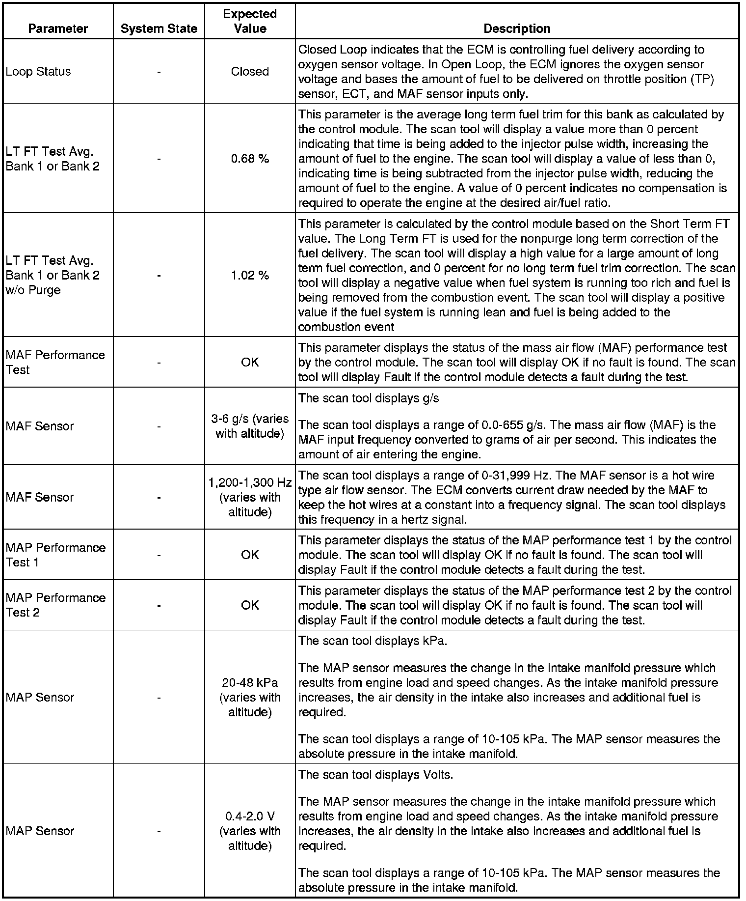 The Engine Scan Tool Data List represents values that would be seen on a normally running engine under the conditions listed below.