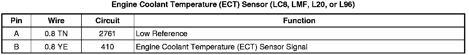 Engine Coolant Temperature (ECT) Sensor (LC8, LMF, L20, or L96)