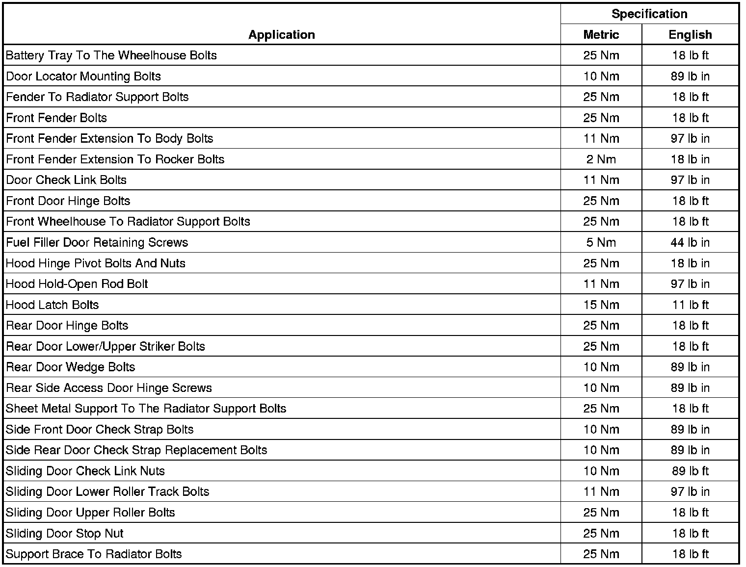 Fastener Tightening Specifications