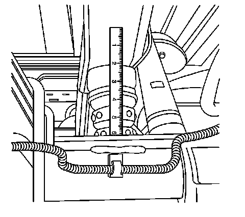 4. Measure the D height by measuring the distance between the rear axle tube or rear axle bracket on vehicles with 7300 GVW rating and the frame.