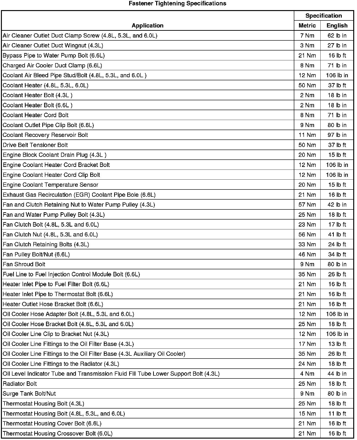 Fastener Tightening Specifications