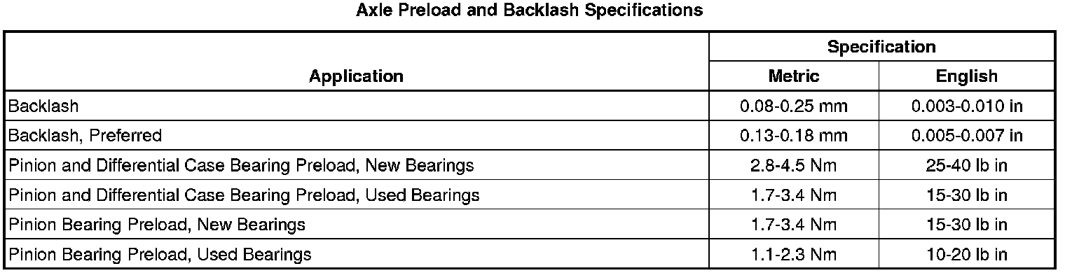Axle Preload and Backlash Specifications