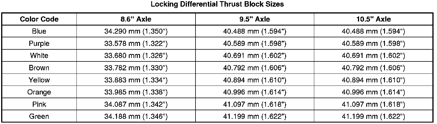 Locking Differential Thrust Block Sizes
