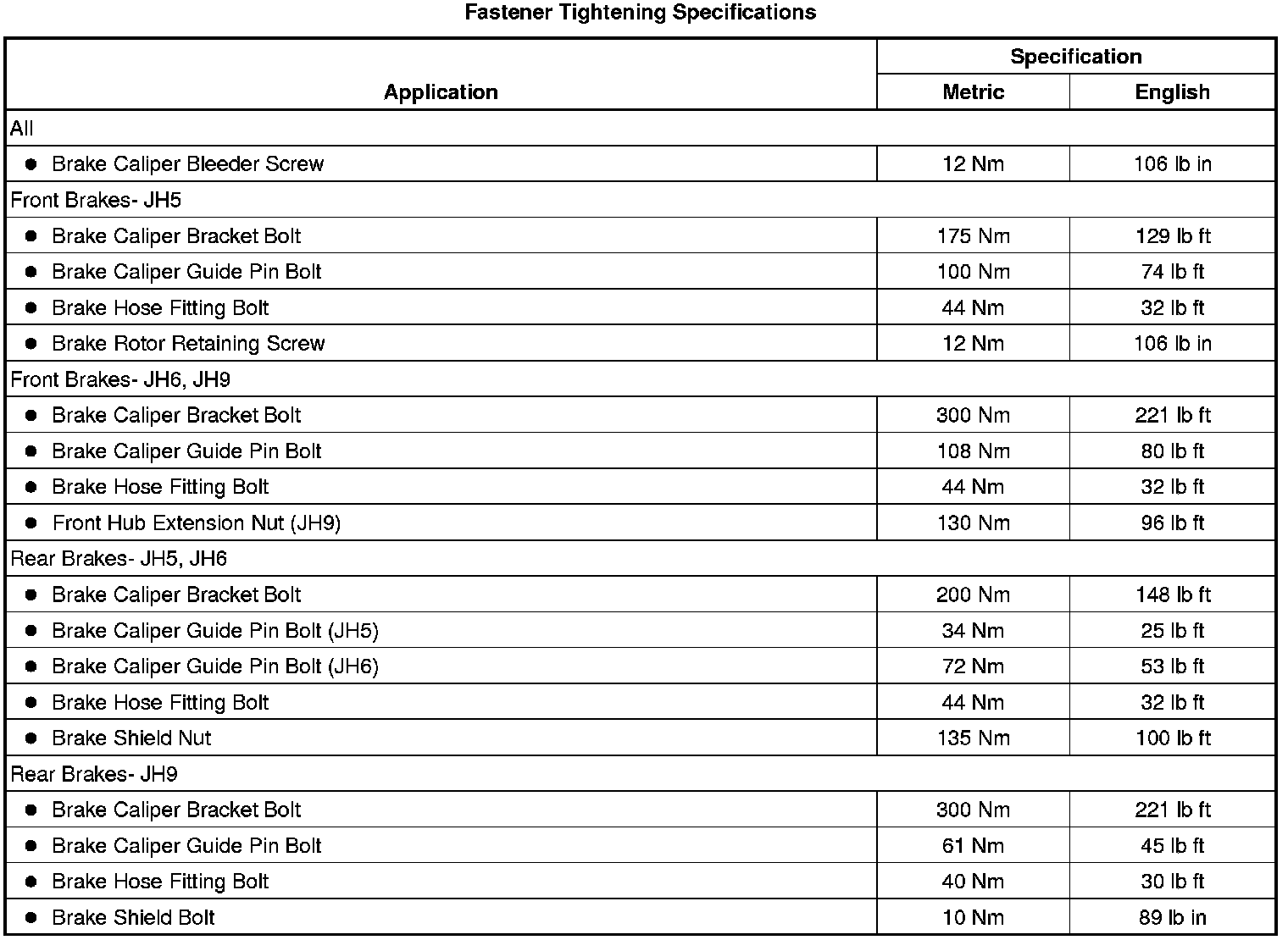 Fastener Tightening Specifications