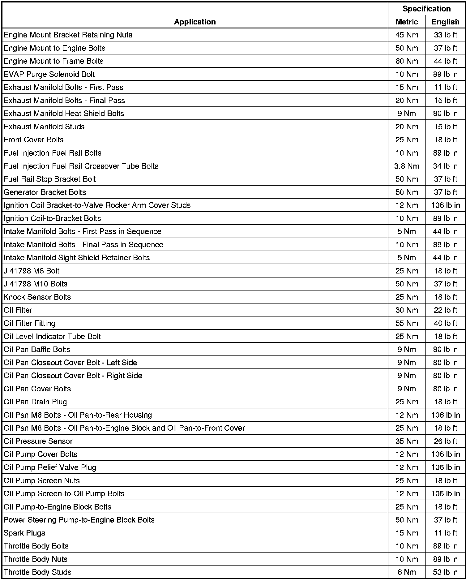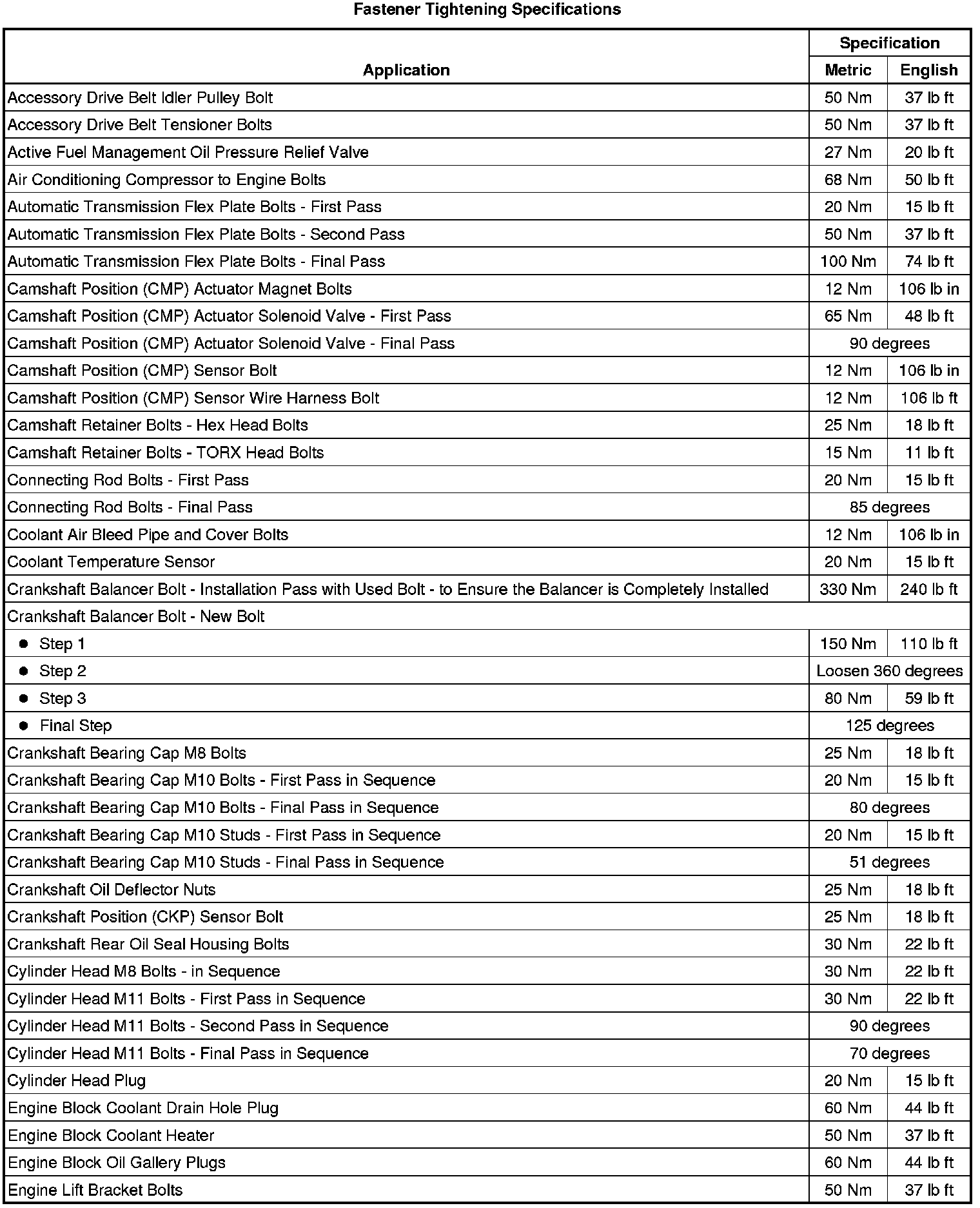 Fastener Tightening Specifications