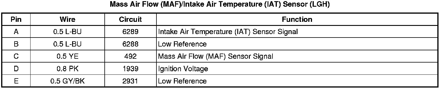 Mass Air Flow (MAF)/Intake Air Temperature (IAT) Sensor (LGH)