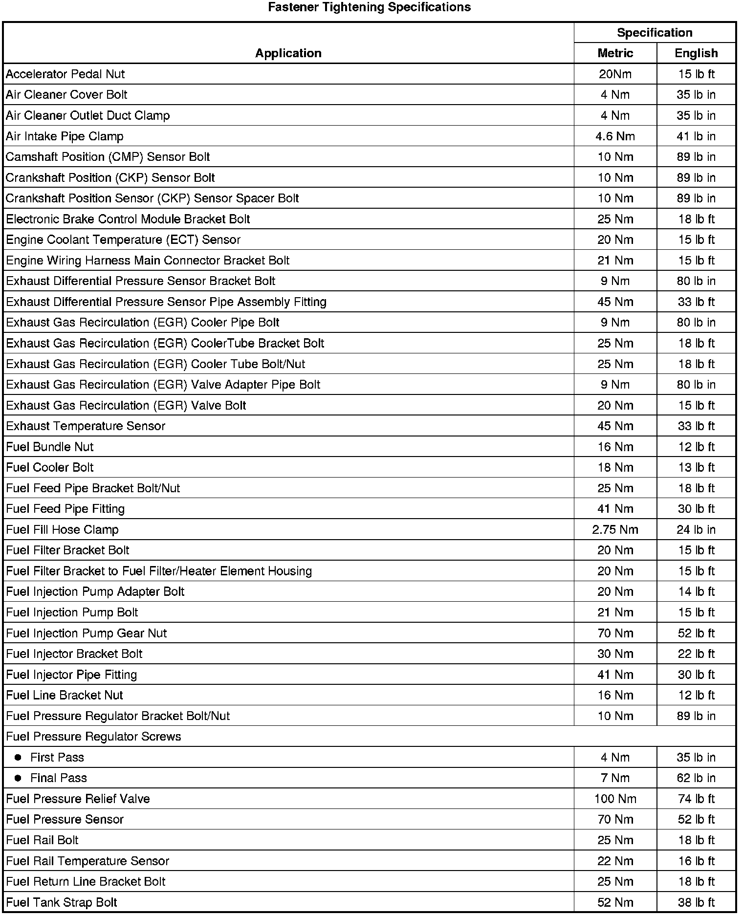 Fastener Tightening Specifications