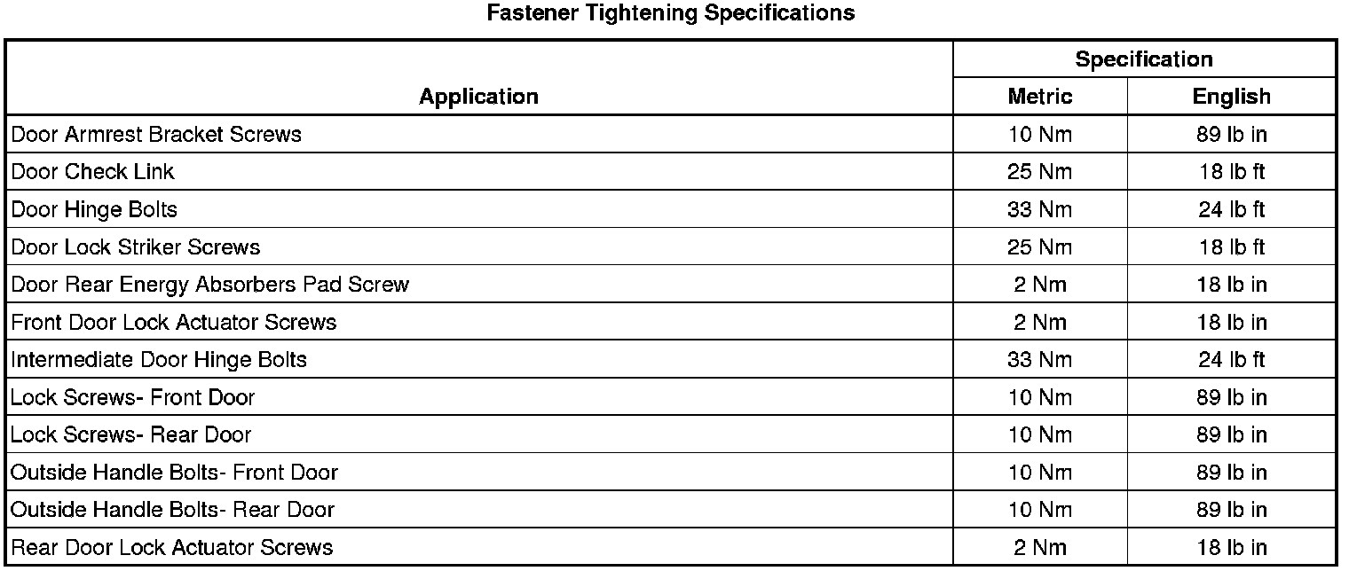 Fastener Tightening Specifications