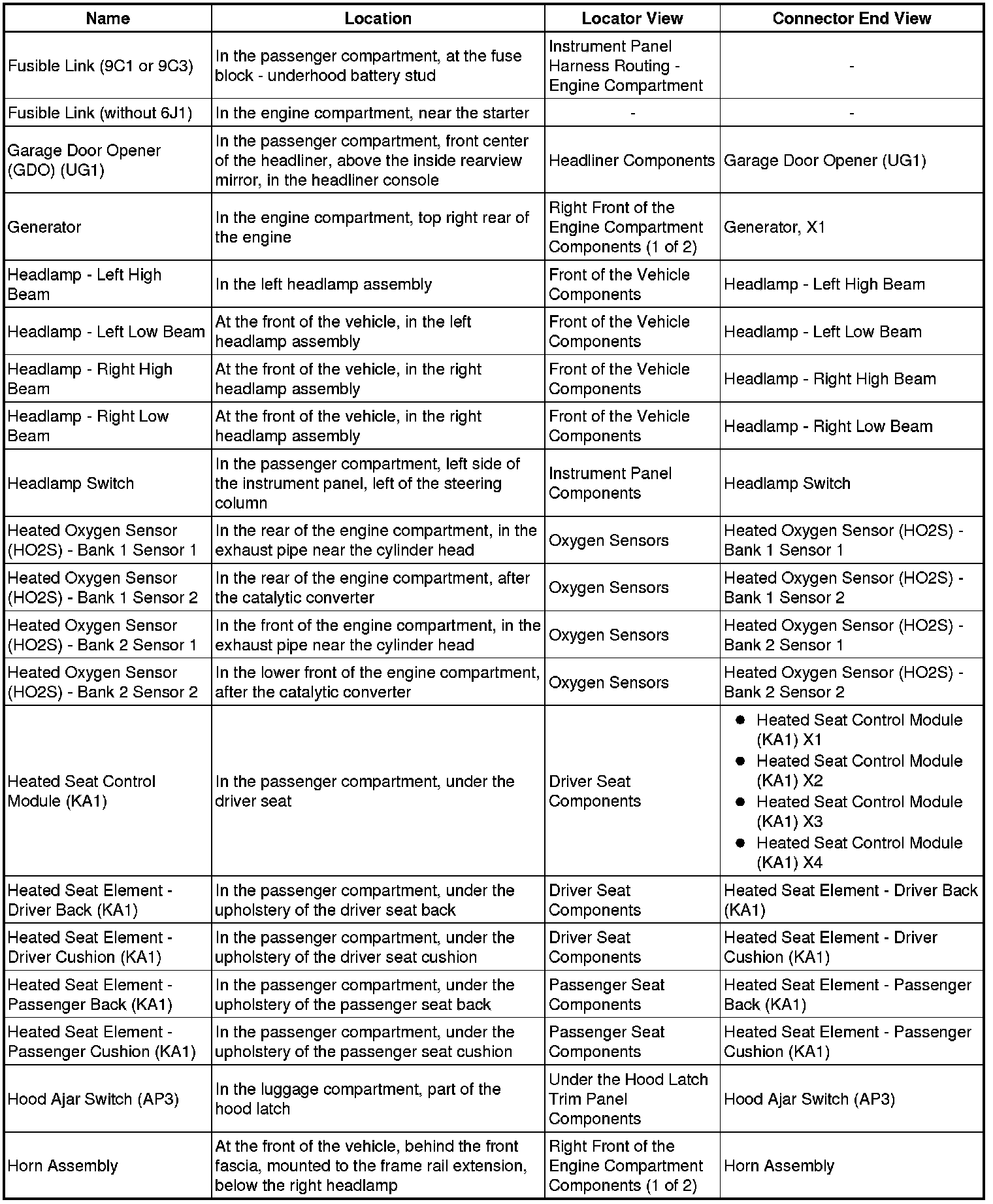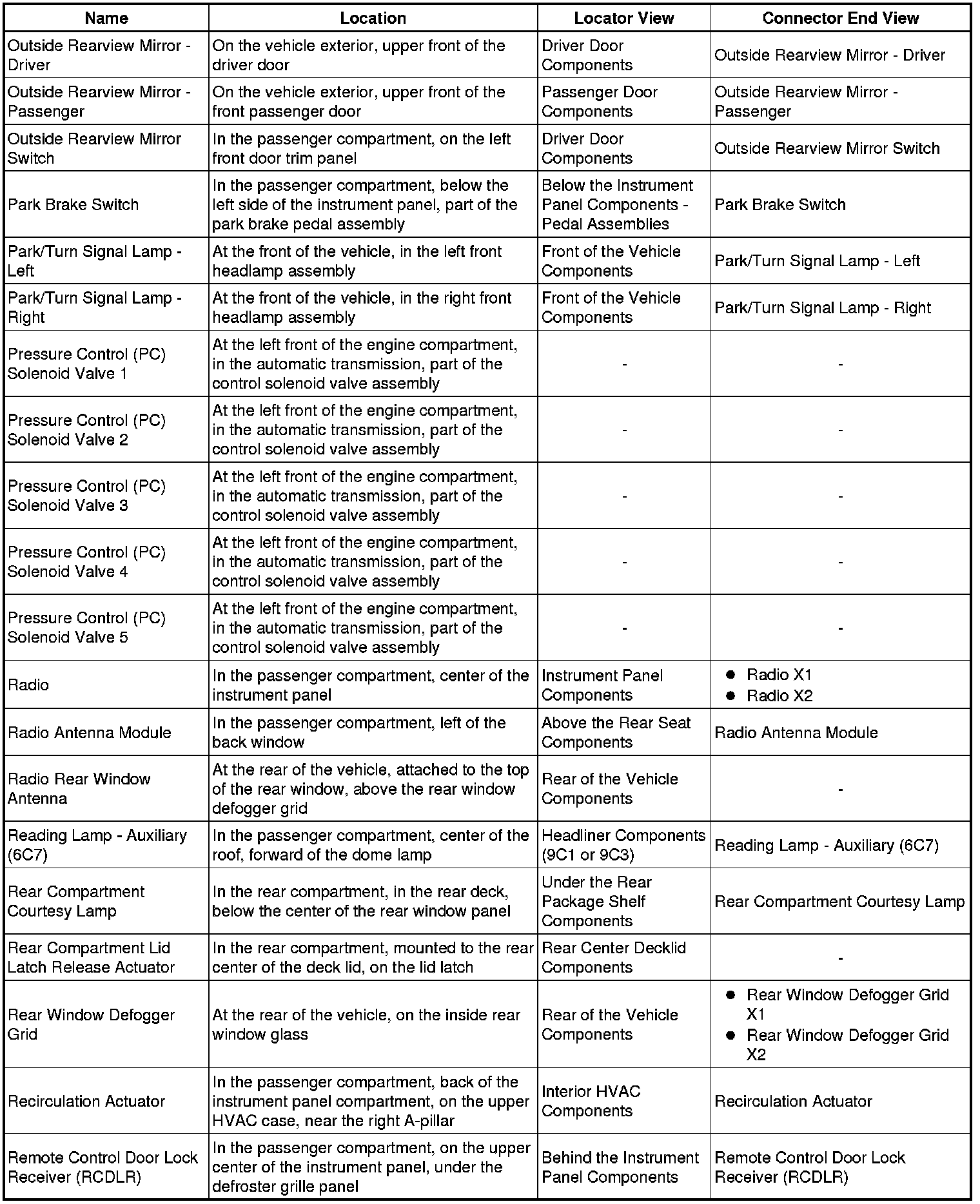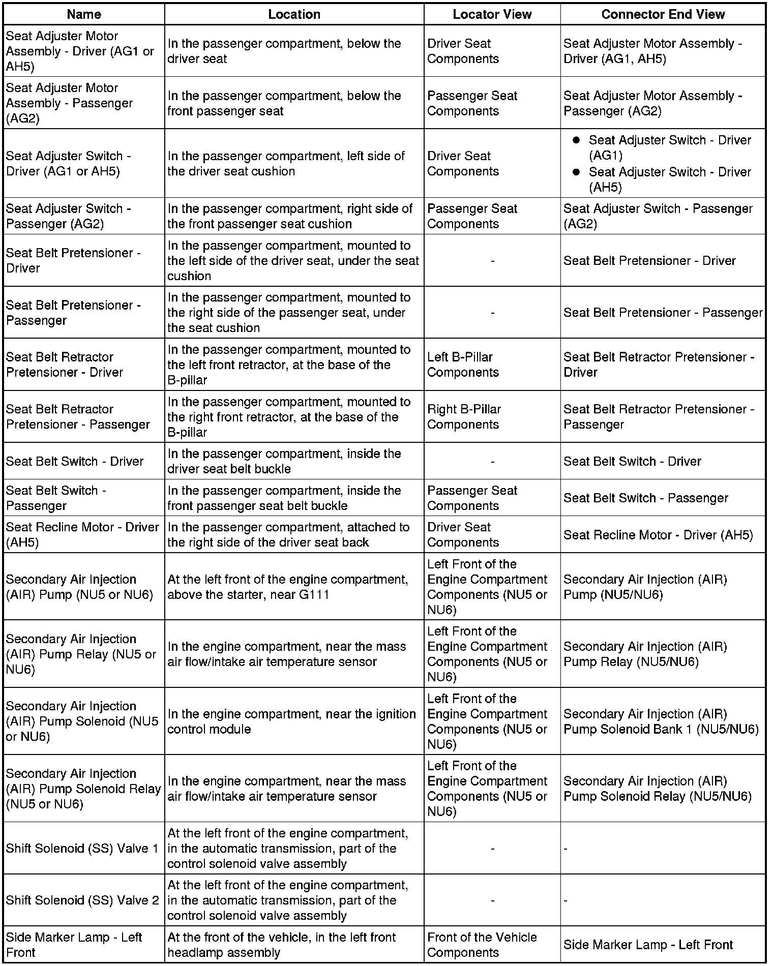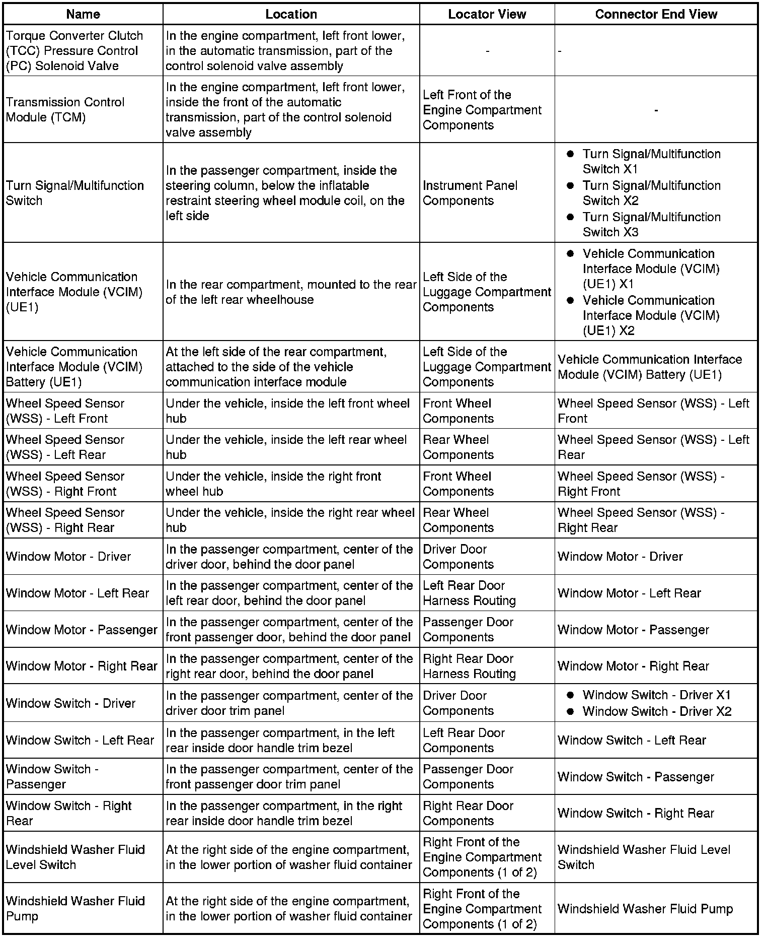Master Electrical Component List