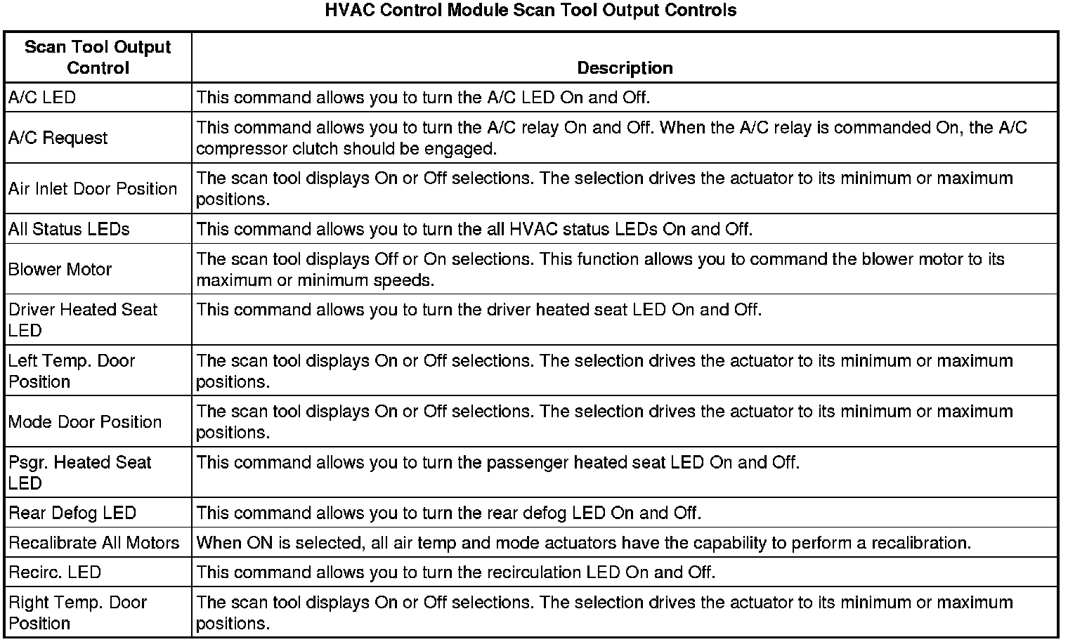 Heating, Ventilation and Air Conditioning Control Module Scan Tool Information