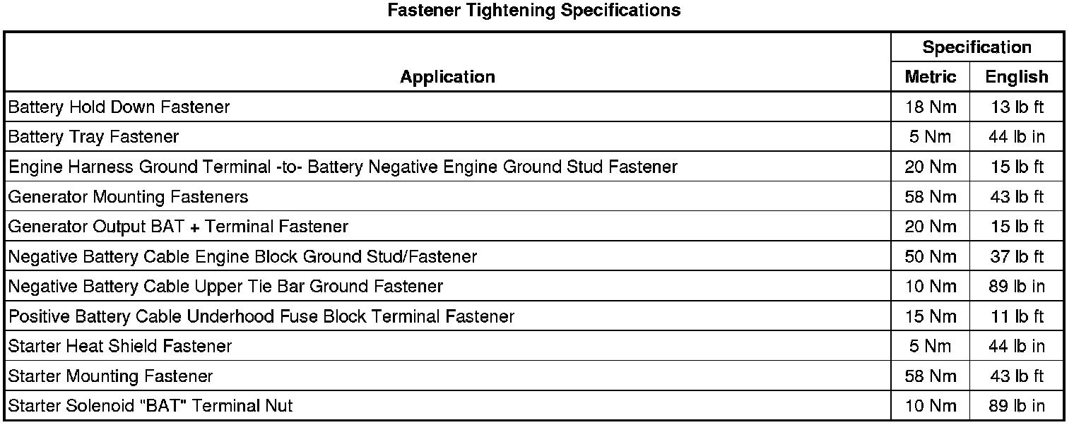 Starting and Charging: Specifications