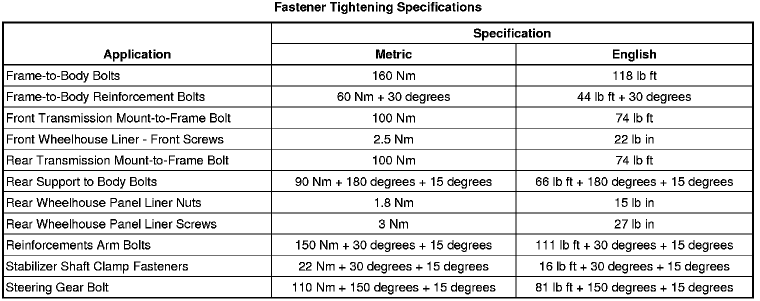 Fastener Tightening Specifications