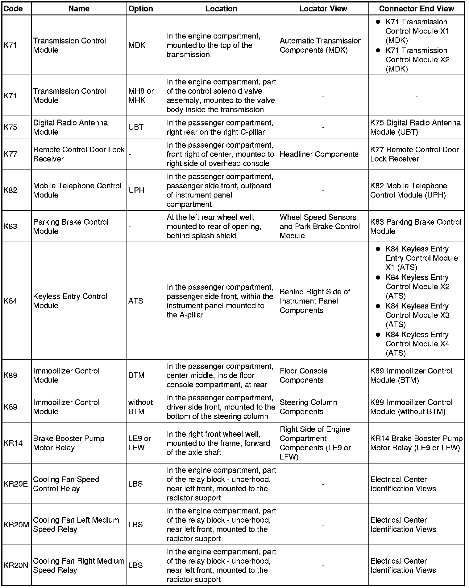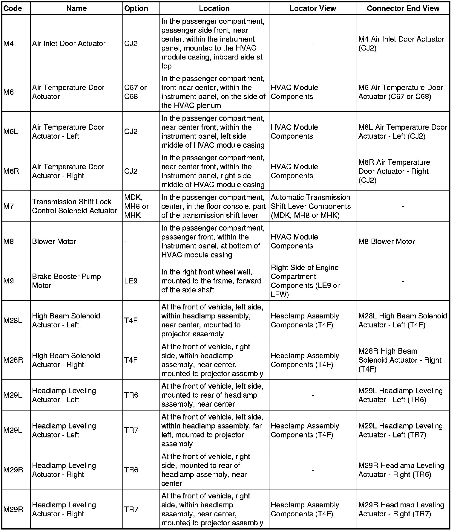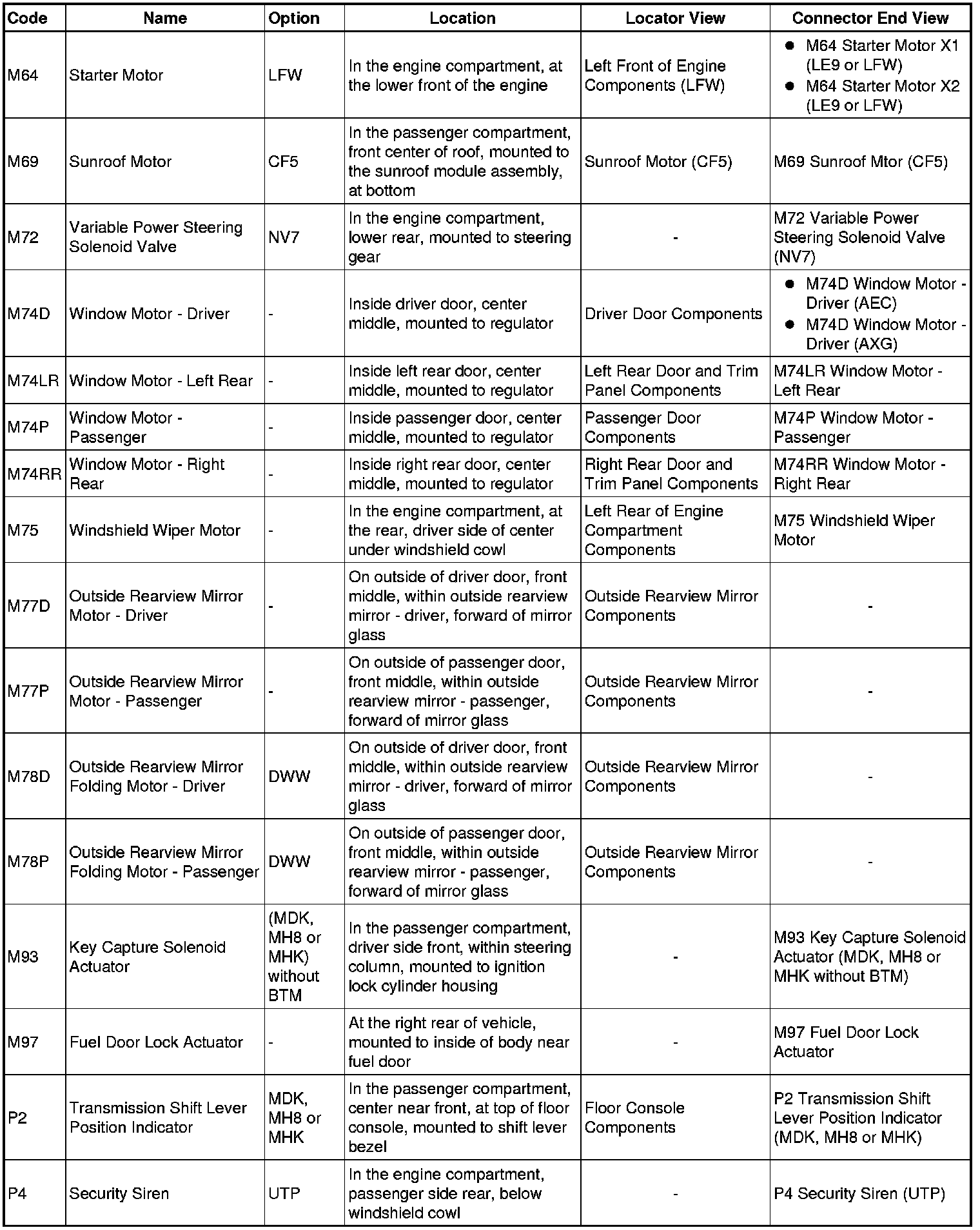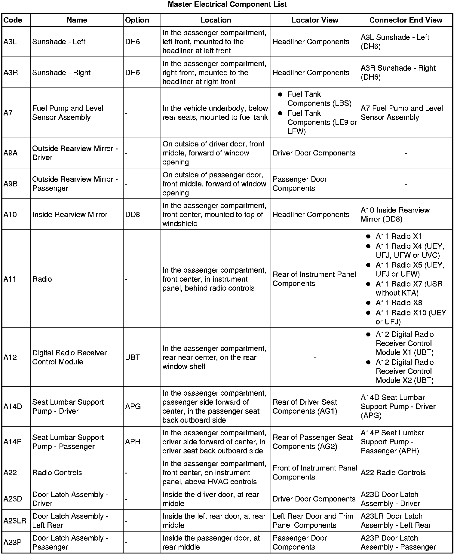 Master Electrical Component List